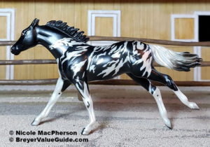 Matte black pinto decorator; pearly finish; horse silhouettes in pinto pattern; "mini Masquerade"; JAH SR; 1/3000
