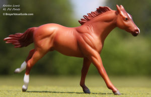Matte dark bay; wide stenciled blaze; 2 hind socks; Target release - with Scrambling Foal
