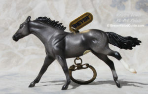 Matte dark dappled grey; resist dapples; stripe; 1 hind sock; keychain; Toys R Us SR