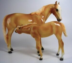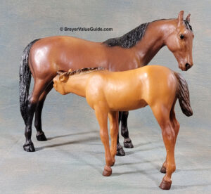 Matte light chestnut; 4 socks; JCPenney SR - with Suckling Foal