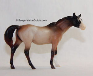 Matte bay roan; darker head and legs; apron face; 1 front sock; Blockbuster release; Hidalgo Collection