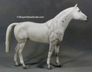 Matte dapple light grey; resist dapples; muscle shading; 2 dark spots on neck; grey hooves; Limited Edition