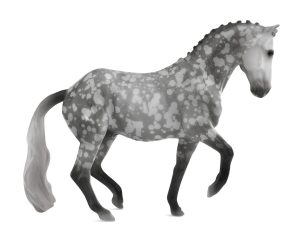 Glossy dark grey extended blanket appaloosa, star and snip, white tail, BreyerFest Prize SR, 1/11