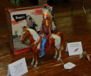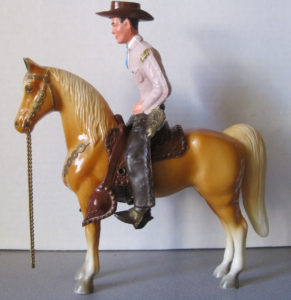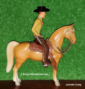 Glossy palomino; same as #43; with brown saddle and Cowboy rider