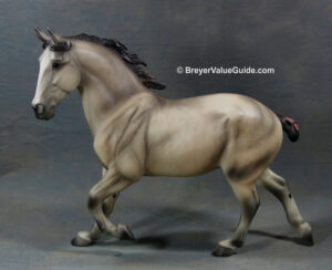 Matte light grey; grey fleabites; blaze; red and white tail ribbon; West Coast Model Horse Collector's Jamboree SR; 1/750