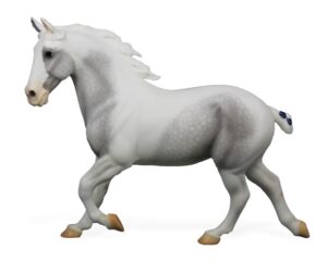 Matte white and grey pinto; very soft markings; dapples; apron face; natural hooves; blue tail ribbon; "Demeter" belly stamp; Goddess Series SR; 1/250