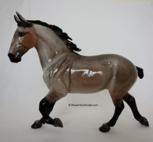 Glossy dappled rose grey; black mane and tail; dark legs with leg barring; "BreyerFest 2015" stamp; BreyerFest SR; 1/1500