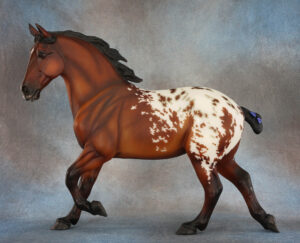 Matte shaded sorrel; dapples; roached mane; blaze; 1 stenciled hind sock; Connoisseur SR; 1/350