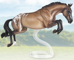 Glossy buckskin; star and snip; frosted mane and tail; 2 hind stockings; "Goldfinch 2021" stamped underneath tail; Collector Club SR; Birds of a Feather Series; 1/380