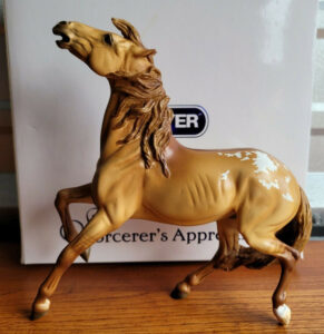 Resin; semigloss dun snowflake appaloosa; small star; snip; dorsal stripe; 1 hind sock; BreyerFest SR; 1/125