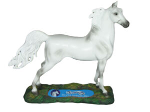 Glossy silver filigree; bald face; white mane and tail; BreyerFest and Web SR; 1/1200 - with bag and magnet
