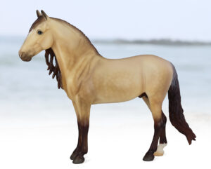 Matte buttermilk buckskin, dapples, stripe, 1 hind sock, one blue eye, Exotic Destinations Series SR, 1/600