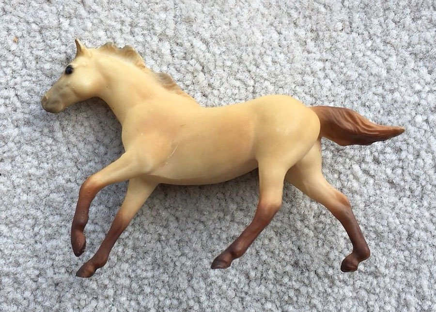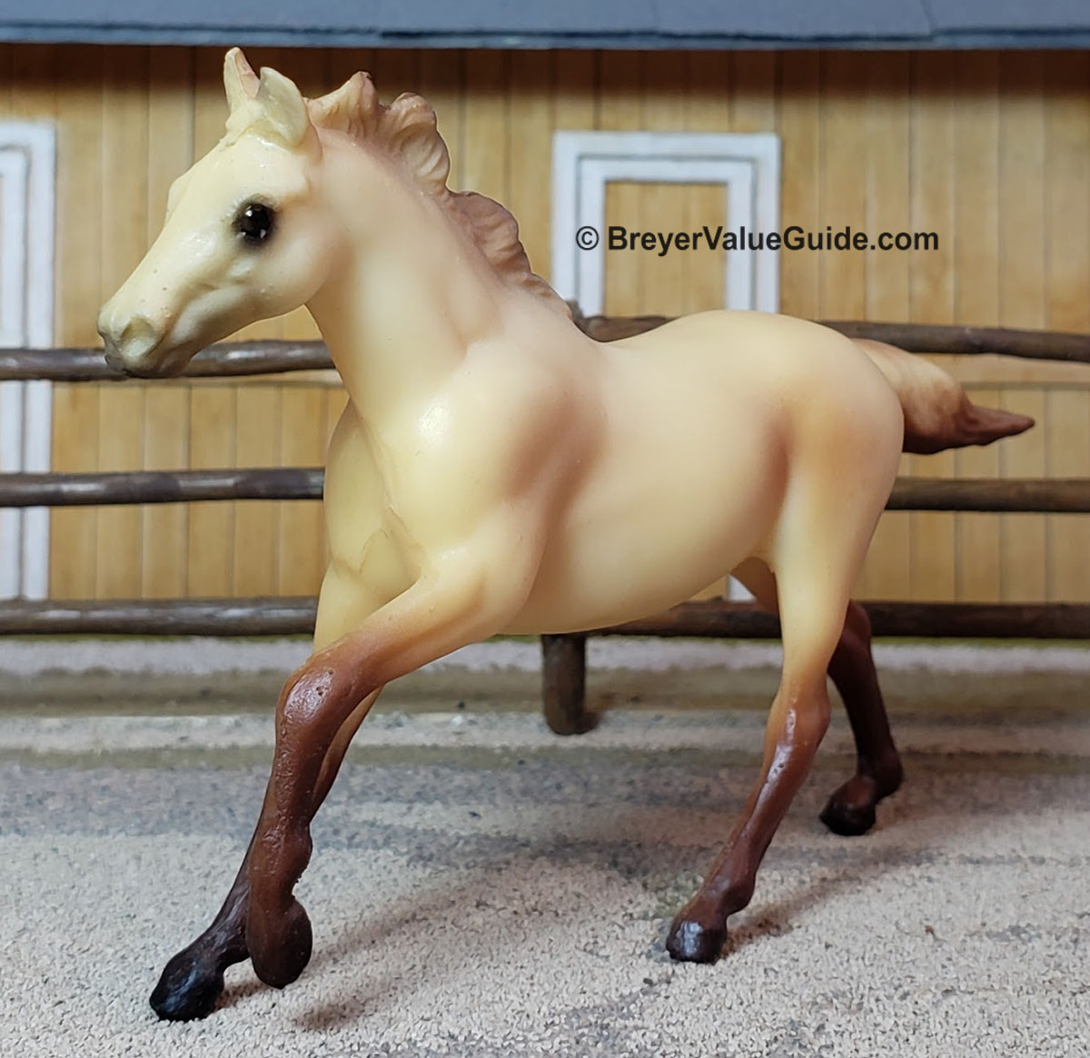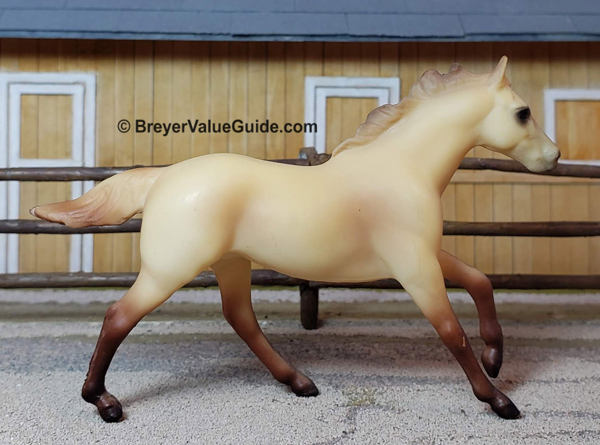 Matte red dun; darker mane and tail; chestnut points; Sears SR