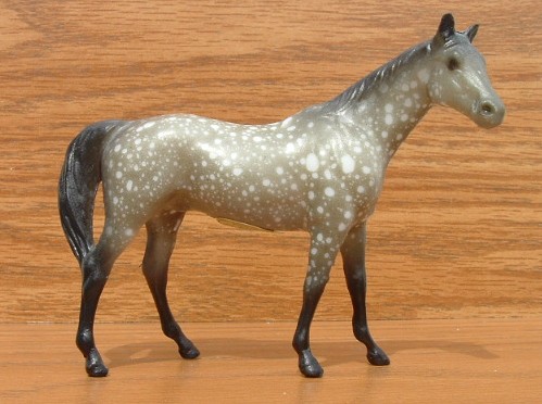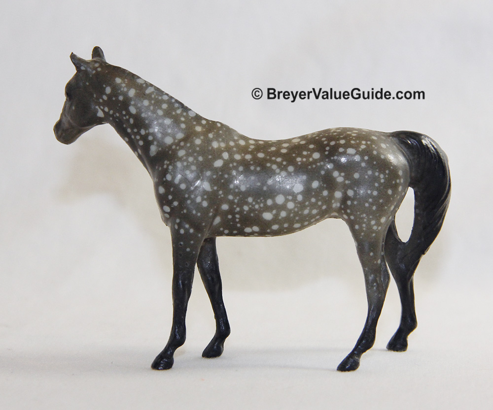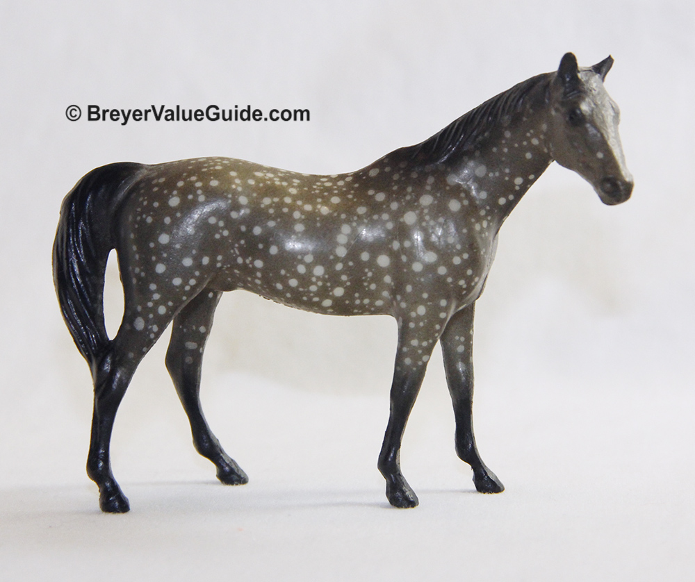 Matte resist ‘bubble’ dapple grey; dark mane and tail; black points; glossy eyes; same as #495092; JCPenney SR