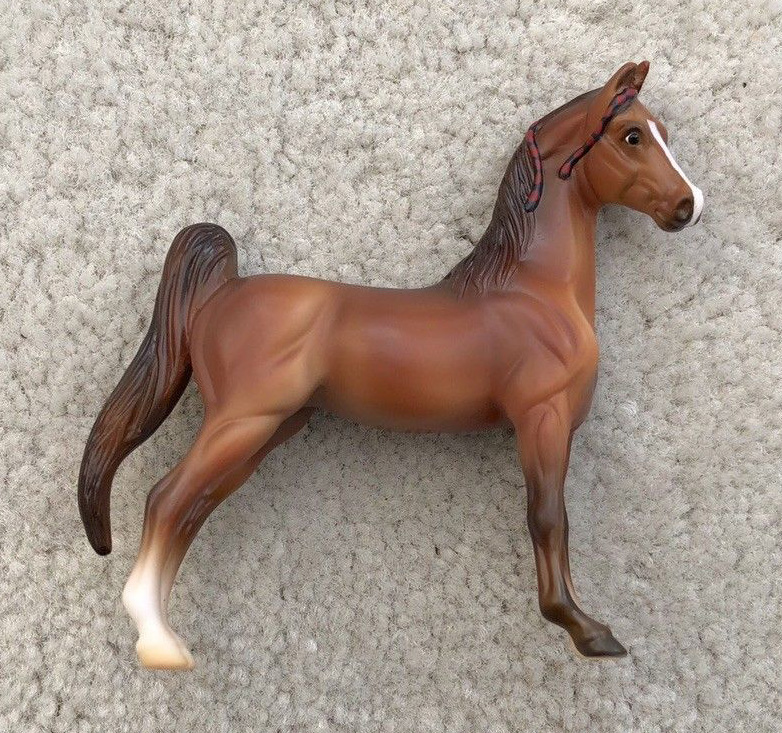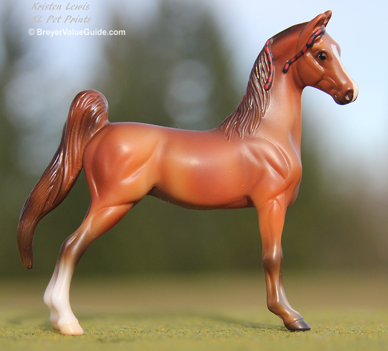 Matte red chestnut; blaze; snip; 3 socks; red and black ribbon; BreyerFest SR; 1/500