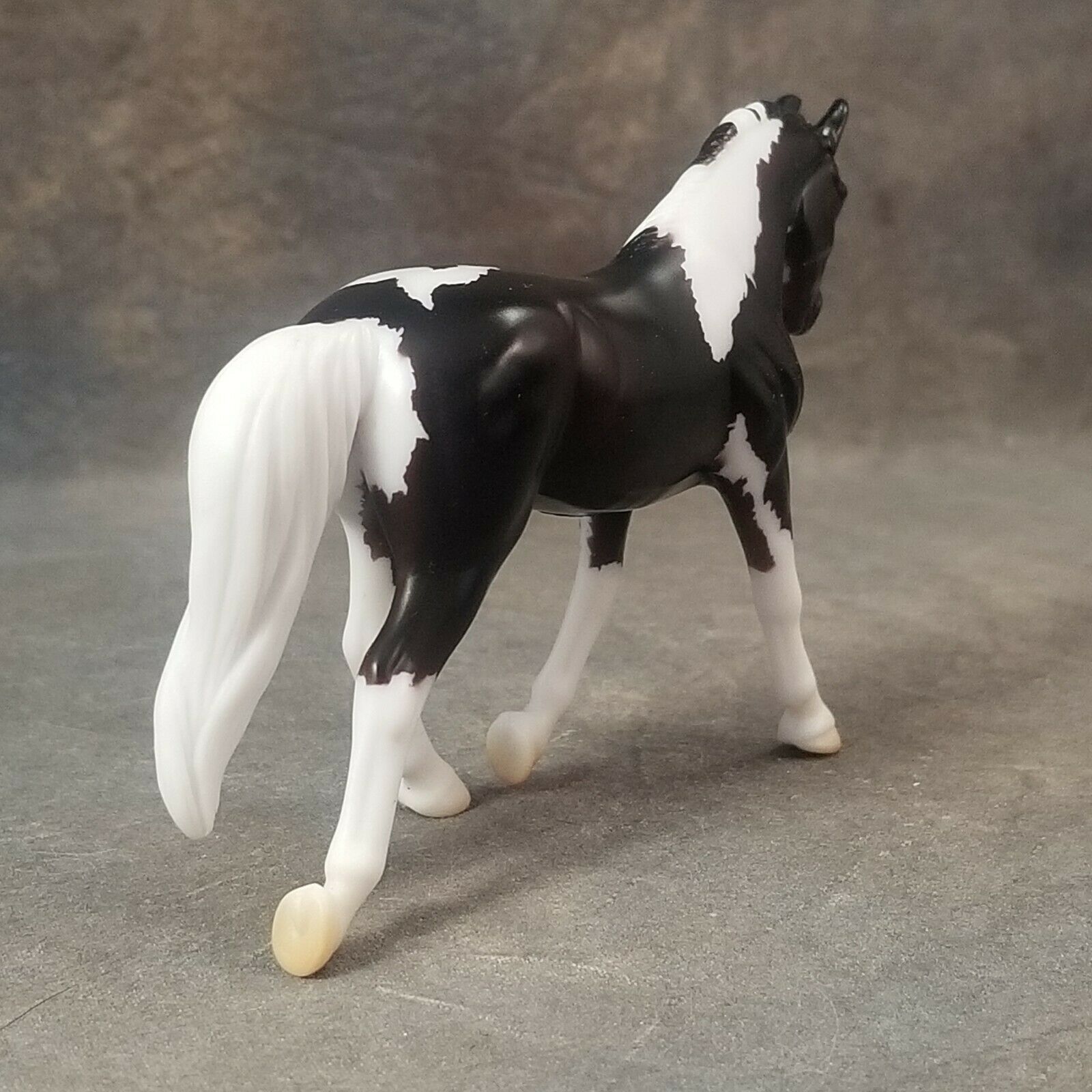 2019 Oliver – Matte dark bay pinto, wide blaze, 4 stockings, BreyerFest Store SR, 1/2000