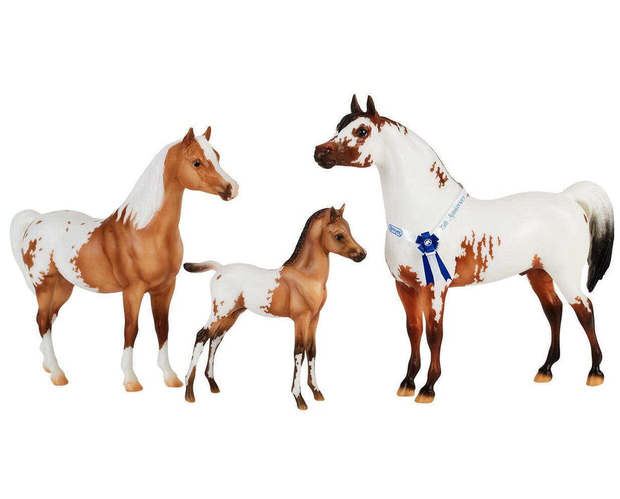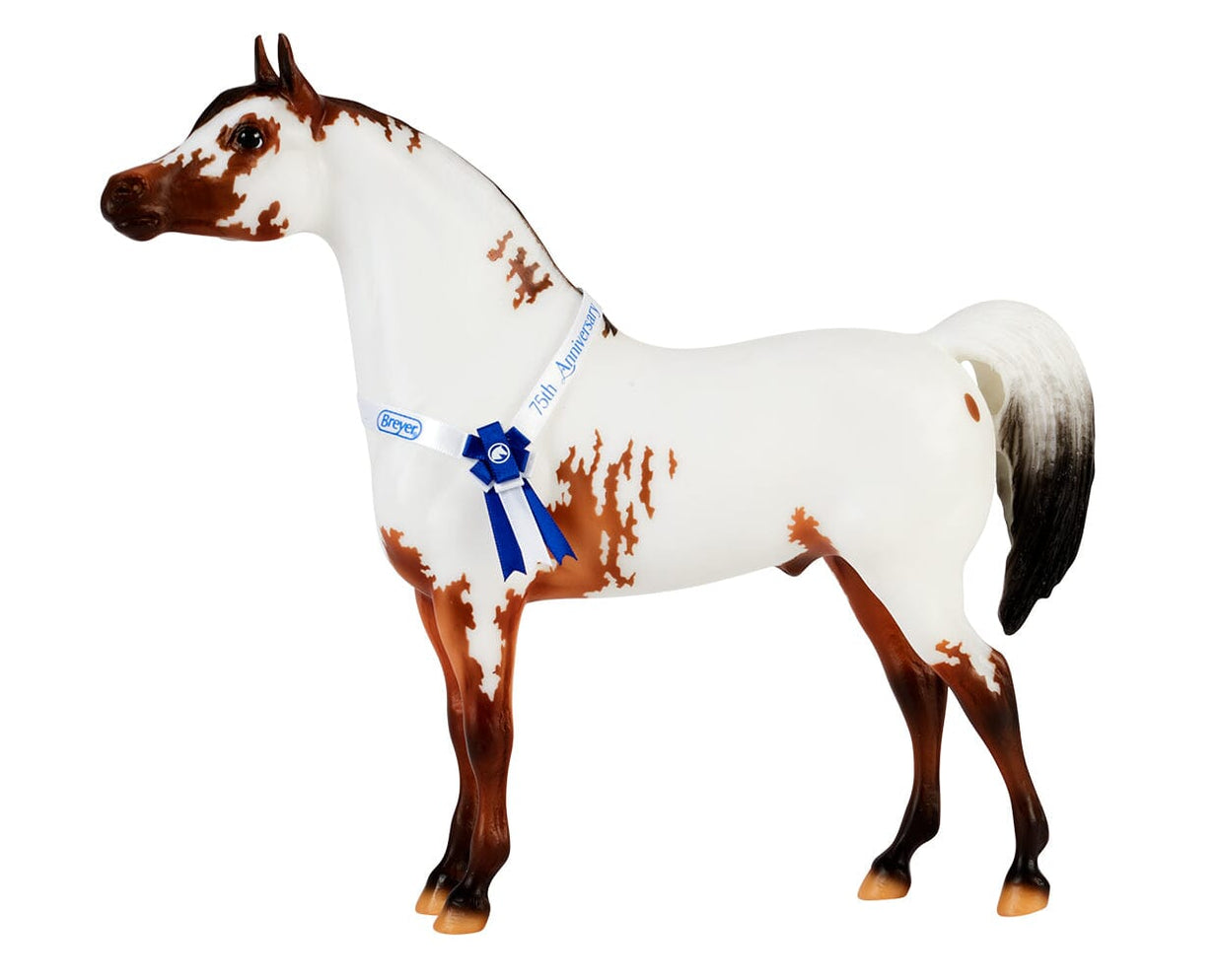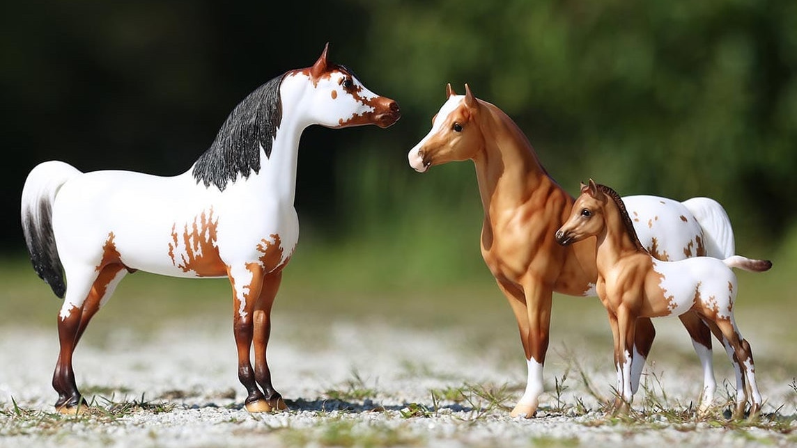 Matte bay rabicano, mostly white with bay legs, black mane, bi color tail – with Proud Arabian Mare and Proud Arabian Foal Issue price: $150 set