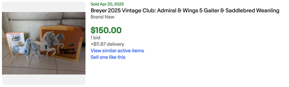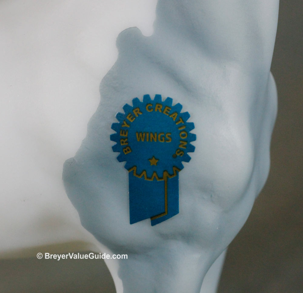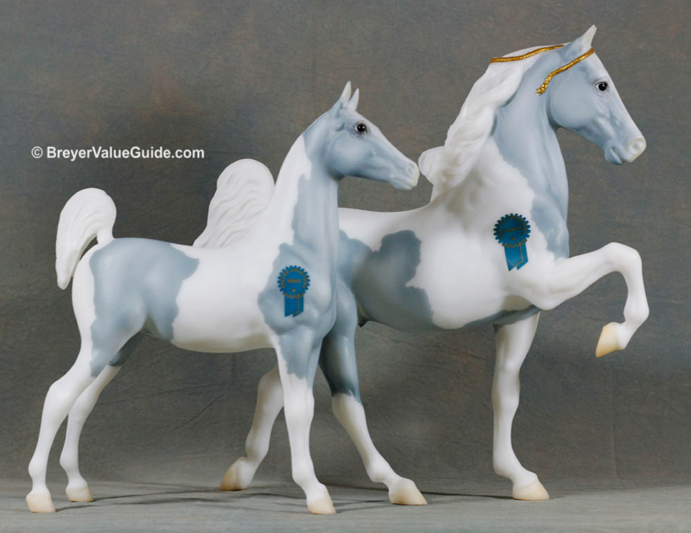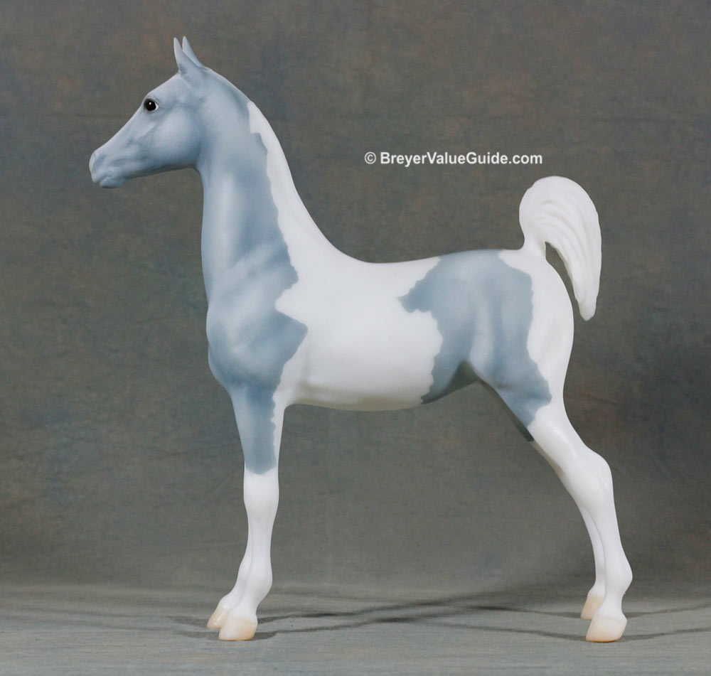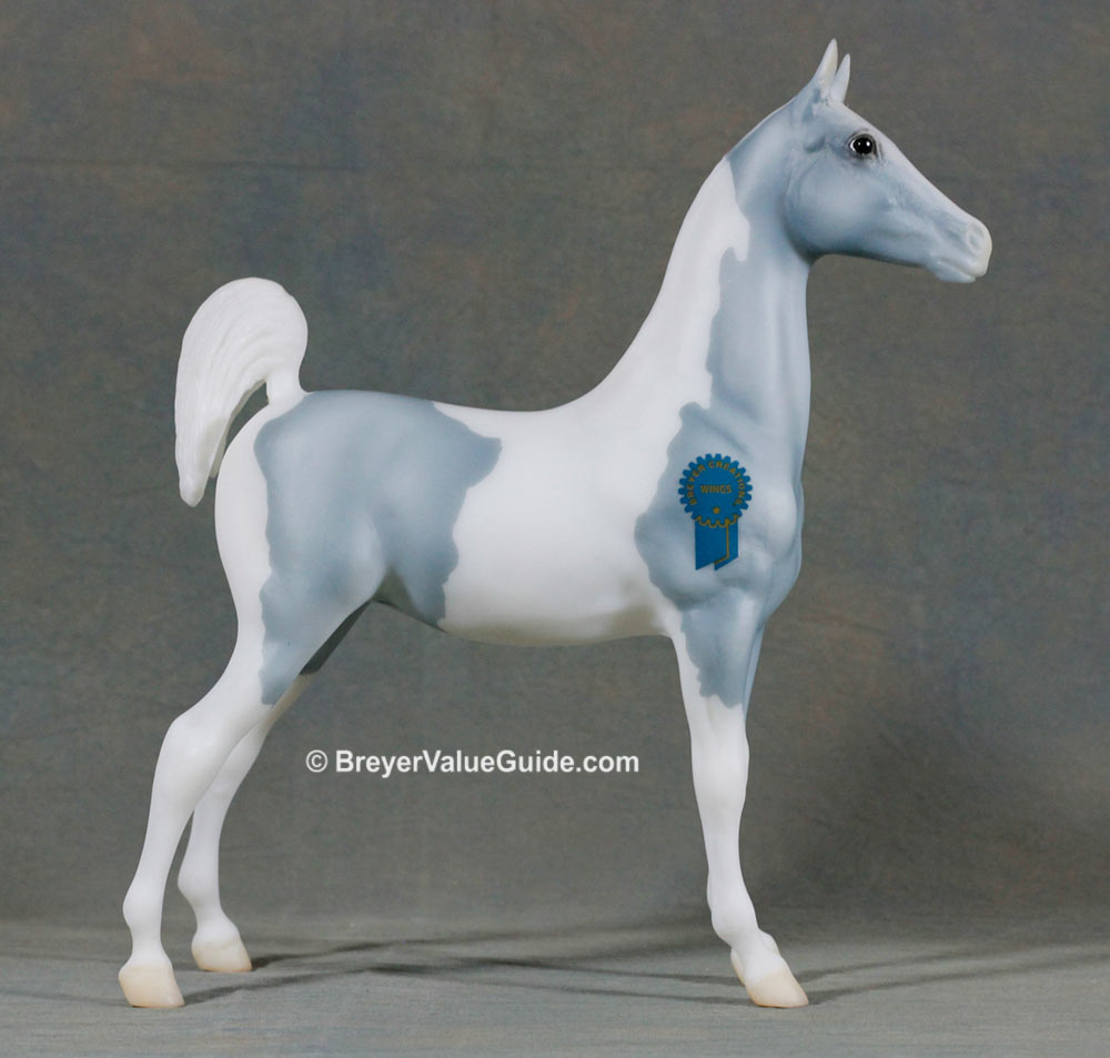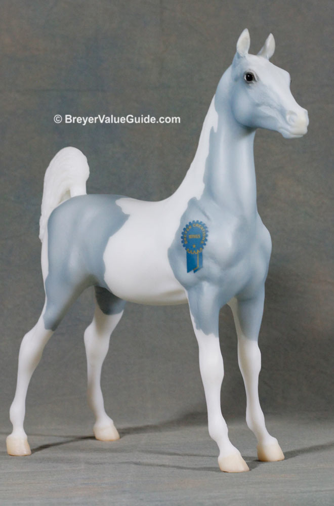 Weanling – Matte Wedgwood blue pinto, bald face, 4 stockings, natural hooves, blue ribbon sticker
