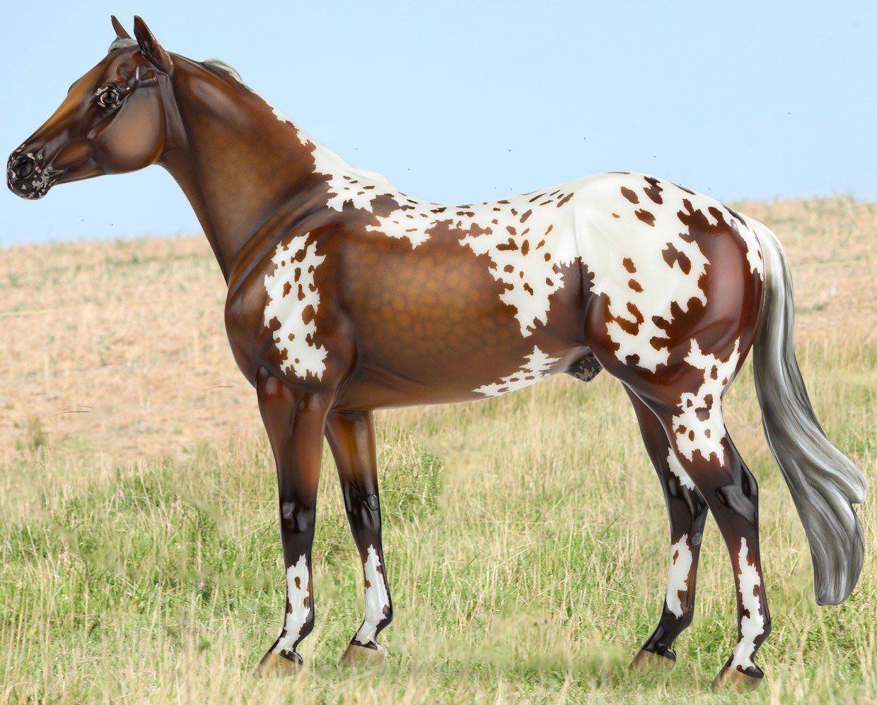 Matte dappled silver bay blanket appaloosa with mottling, striped hooves, shaded mane and tail,