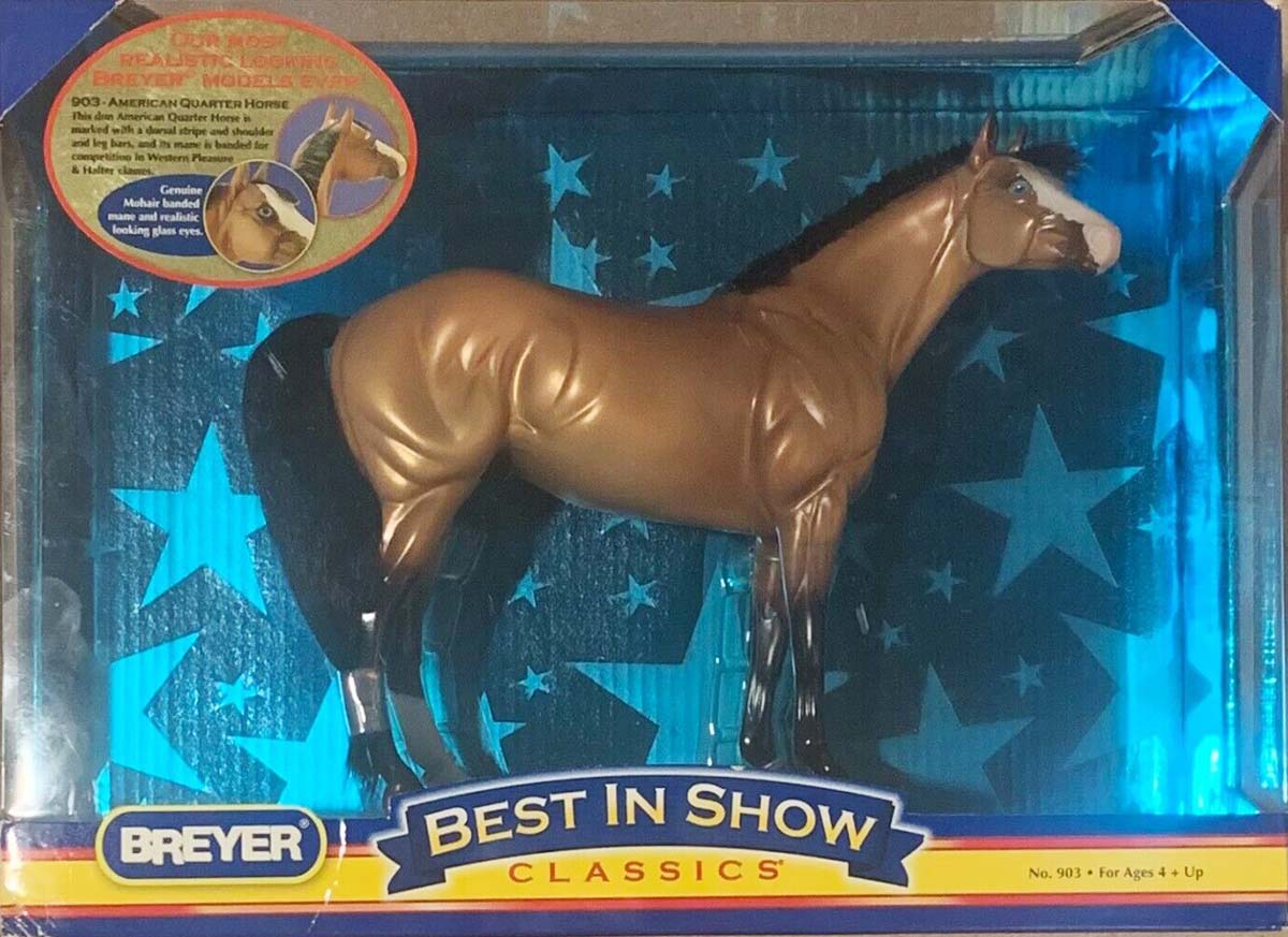 Matte dun; wide blaze; 1 hind sock; mohair mane and tail; glass eyes; presentation base