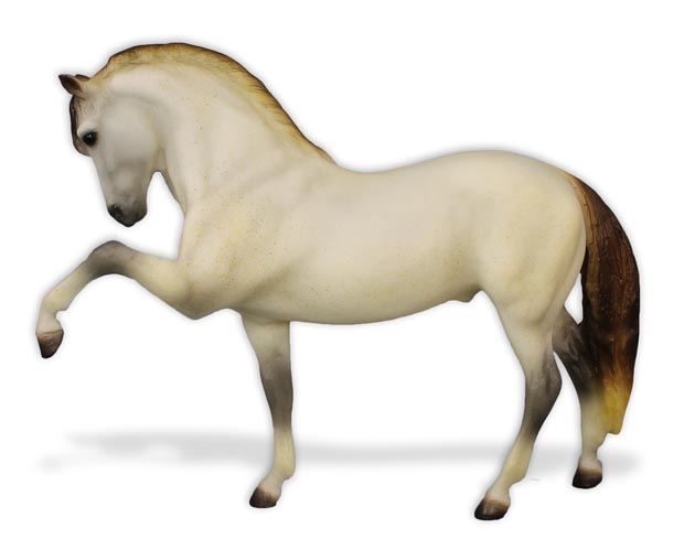 Matte light red roan; light chestnut roaring; dark mane and tail with yellow tips; grey shaded points; similar to Medieval Knight #880; Warehouse Find