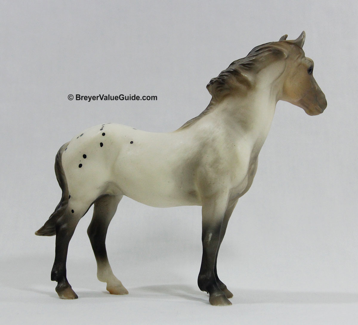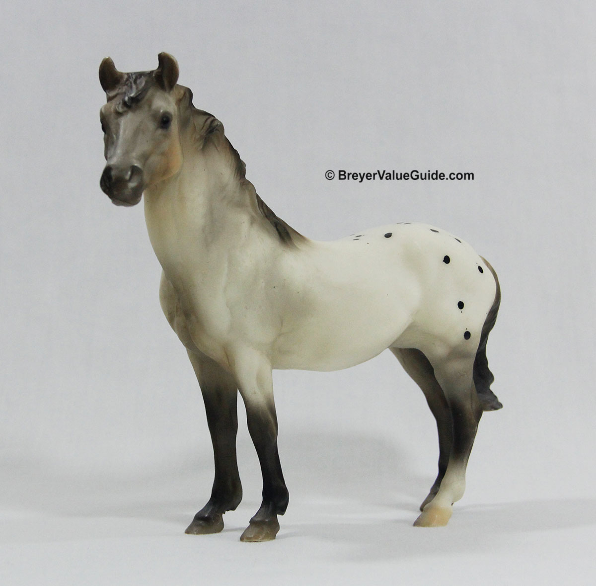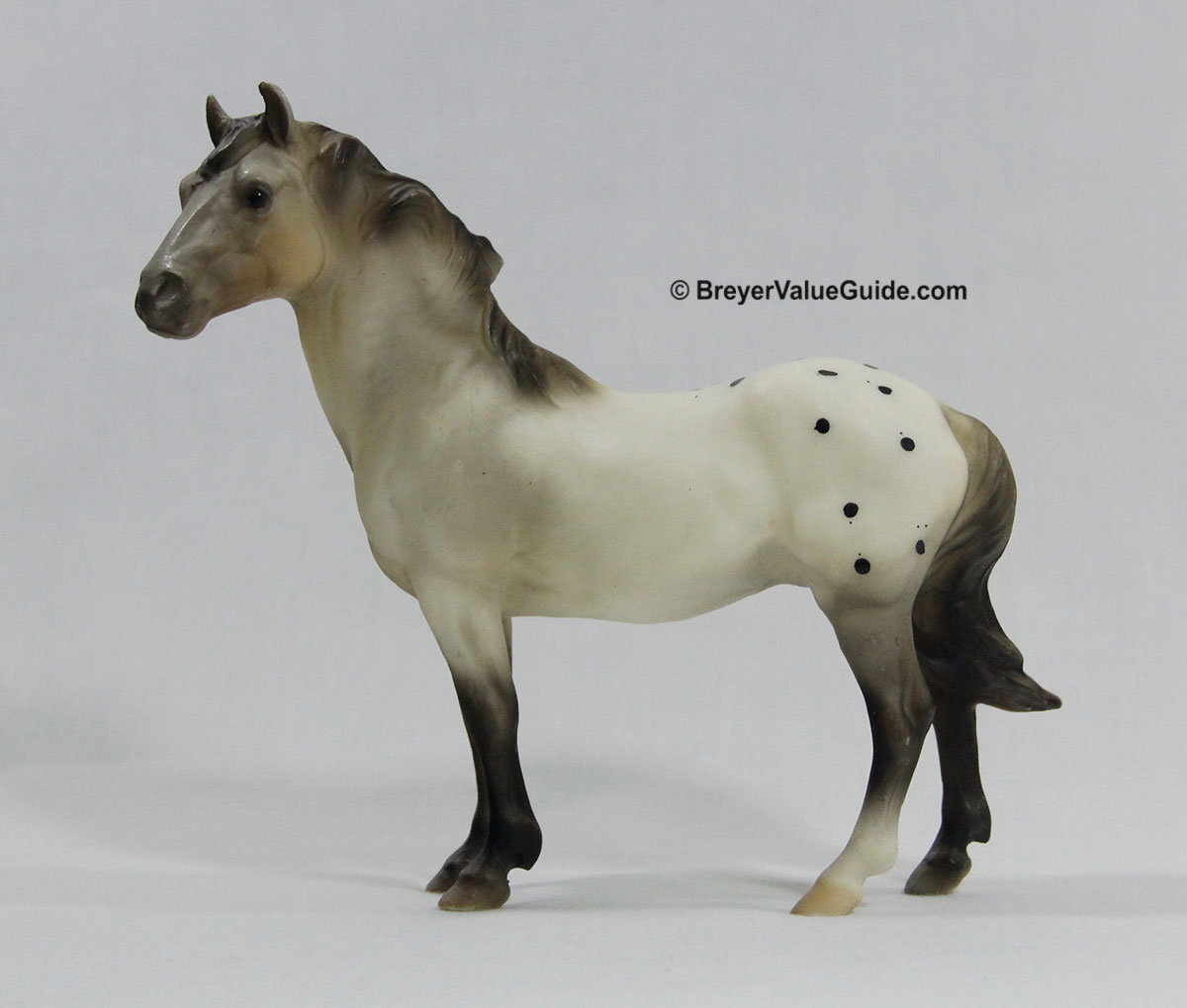 Matte dun; appaloosa spots on hindquarters; darker mane and tail; left hind sock; (also lighter color variation) – with Mustang Foal; Mustang Mare
