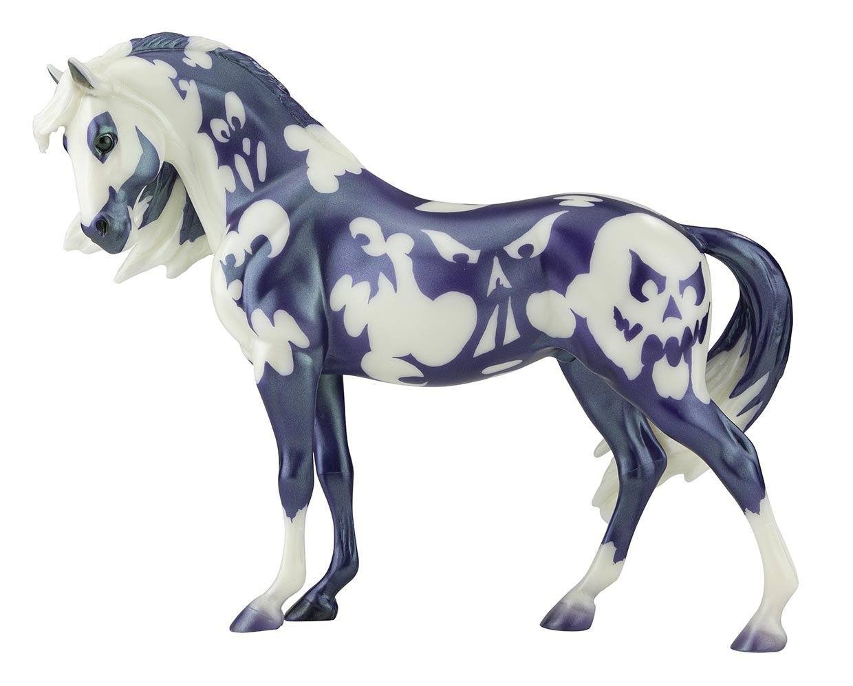 2020 Halloween Horse Semigloss midnight blue with purple interference; ghoul shaped pinto markings; glows in the dark; Limited Edition