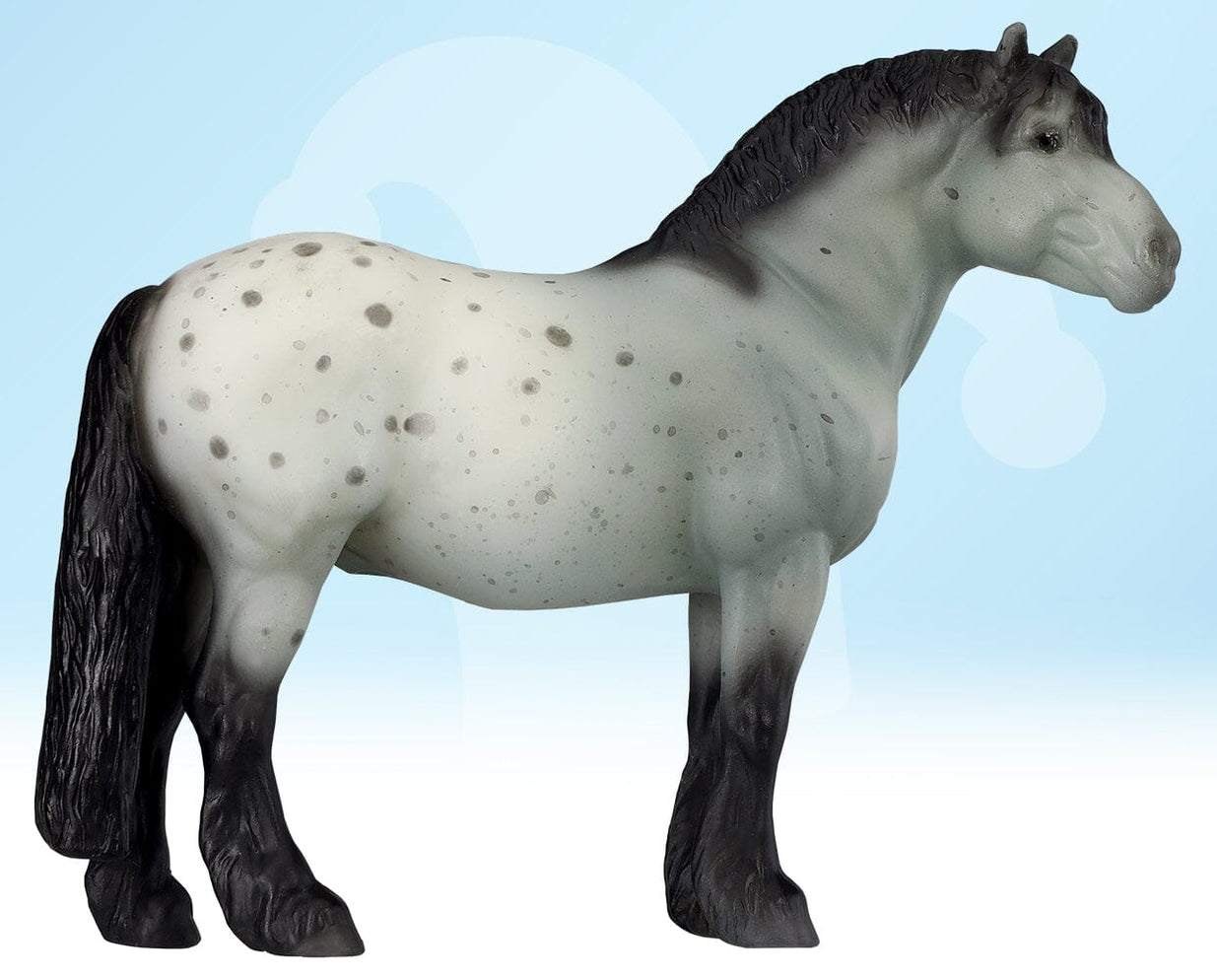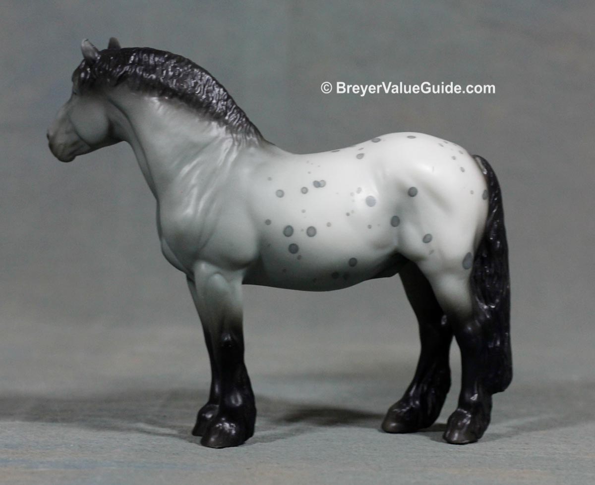Matte bluish-grey appaloosa, grey splash spots, black legs, mane and tail