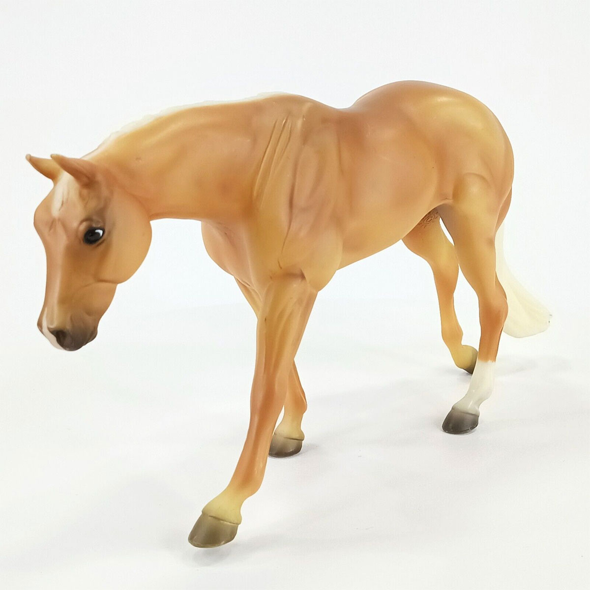 Matte palomino; snip; eye whites, 1 hind sock; Walmart SR – with American Quarter Horse Stallion; American Quarter Horse Foal
