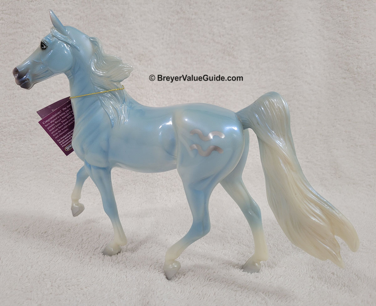 Iridescent turquoise blue with white/ blue mane and tail; Zodiac signs on hips; Zodiac Series SR