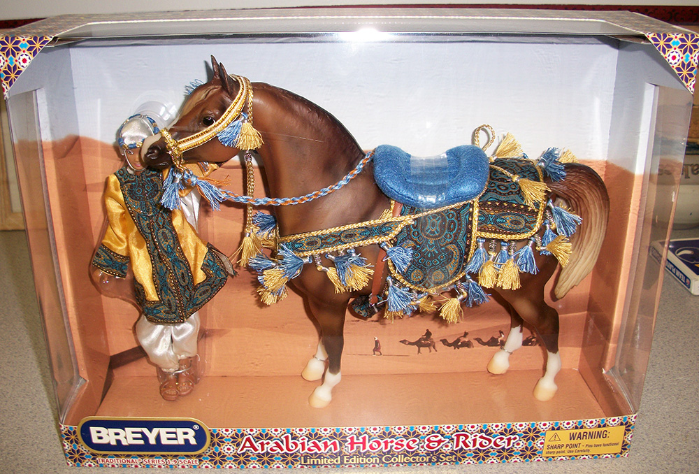 Matte chestnut; blaze; 4 socks – with Arabian tack and rider doll. Limited Edition Valued as Complete Set.