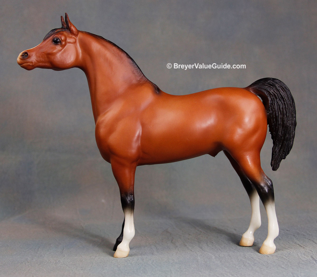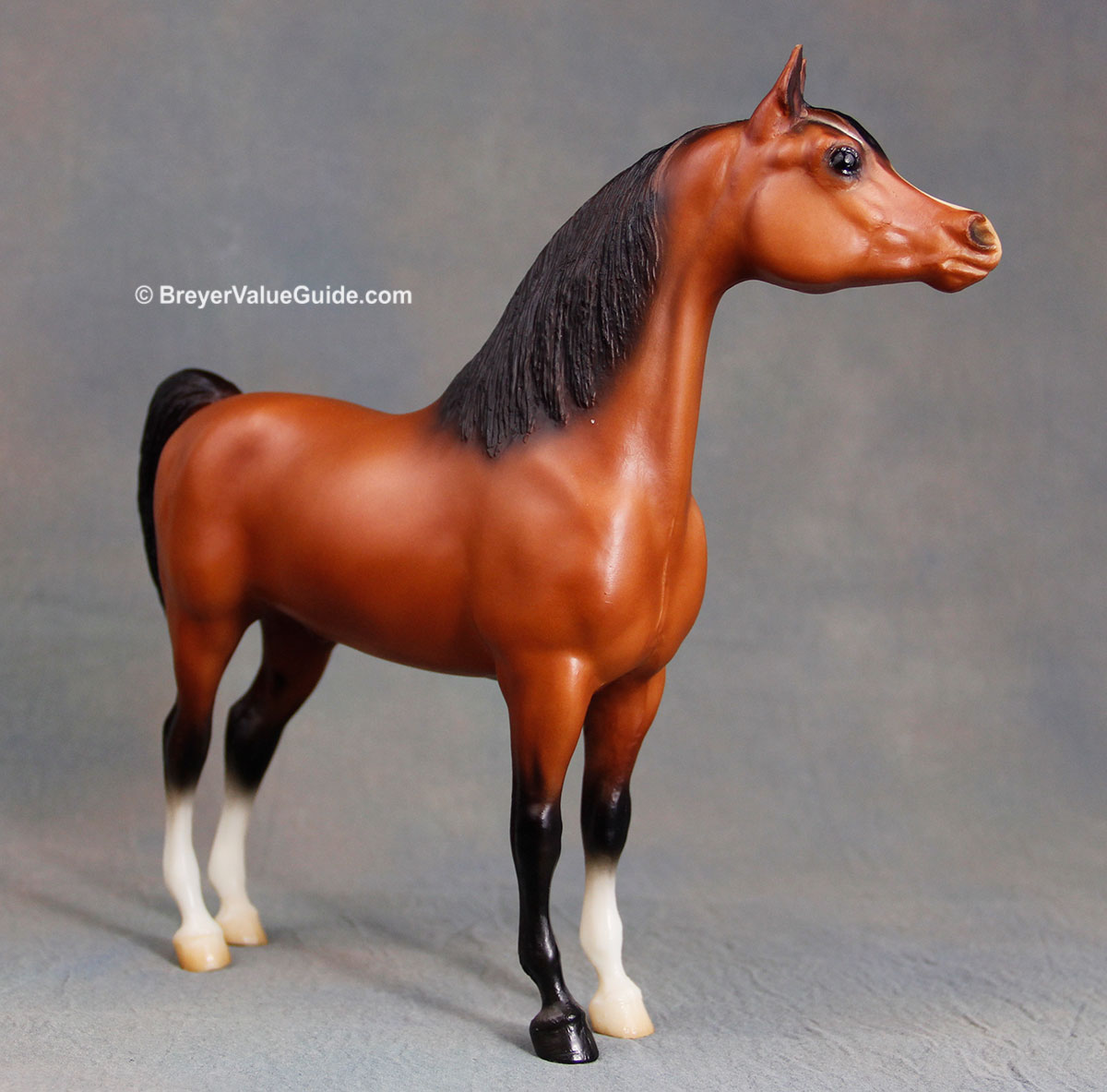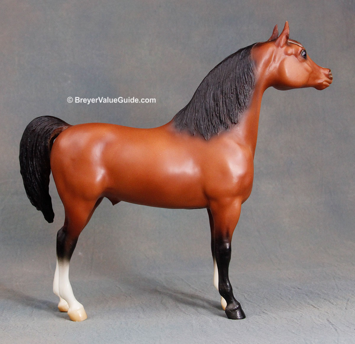 Matte to semigloss bay; blaze over muzzle; 3 or various socks; Sears SR – with Family Arabian Stallion; Proud Arabian Mare