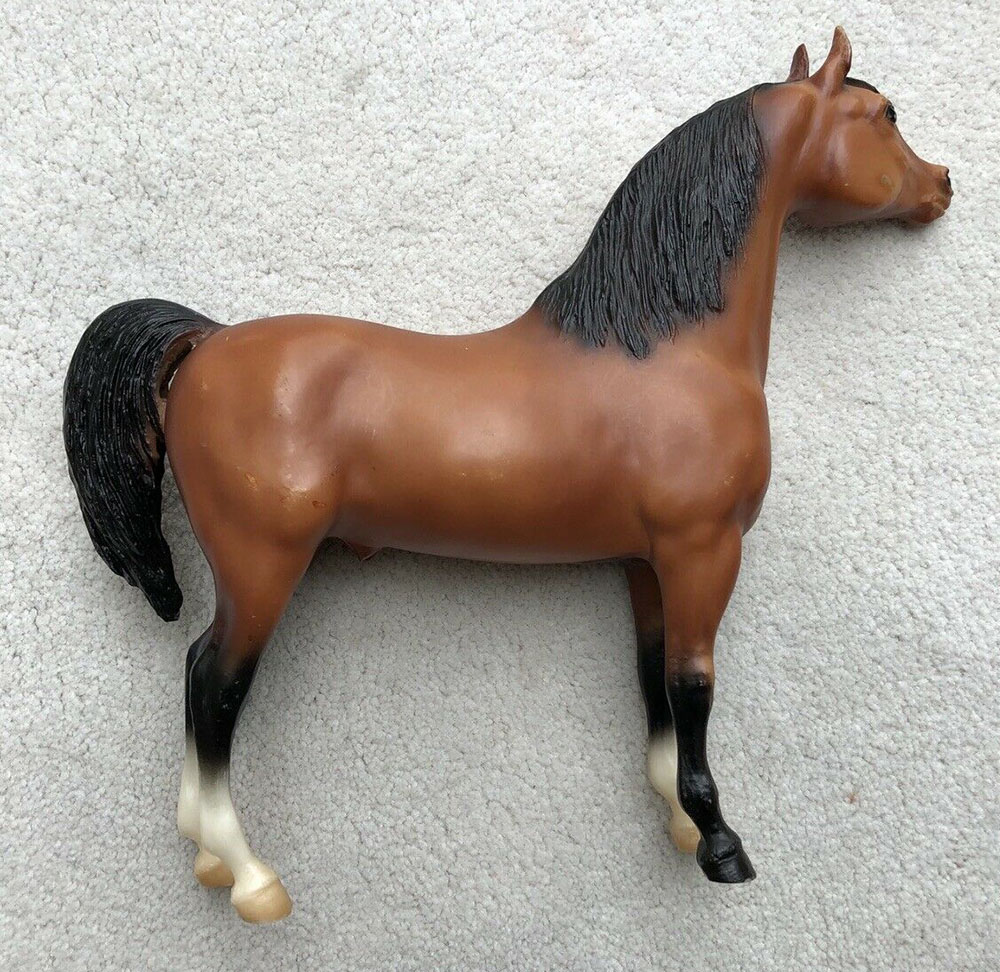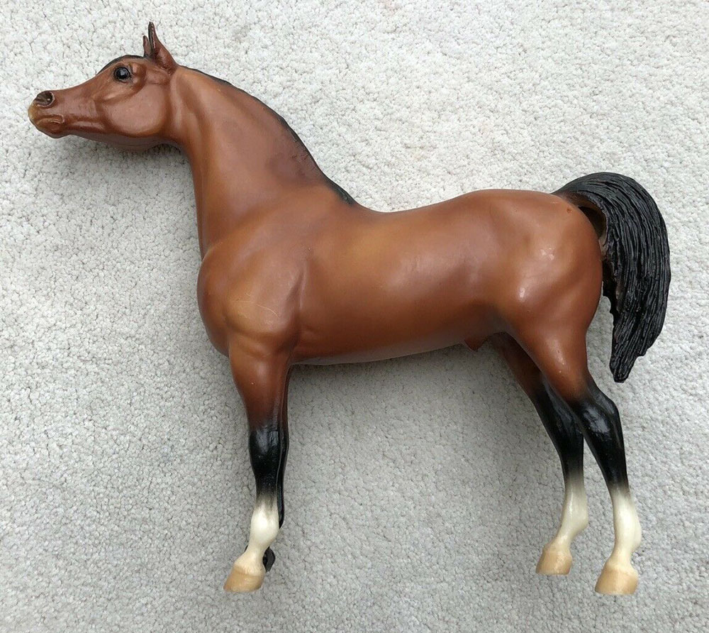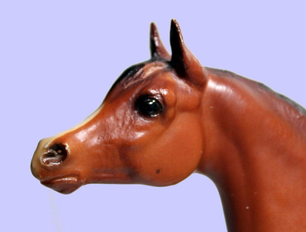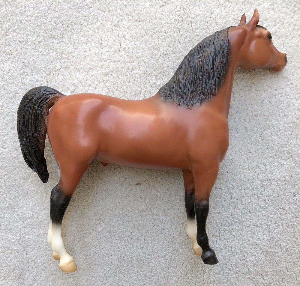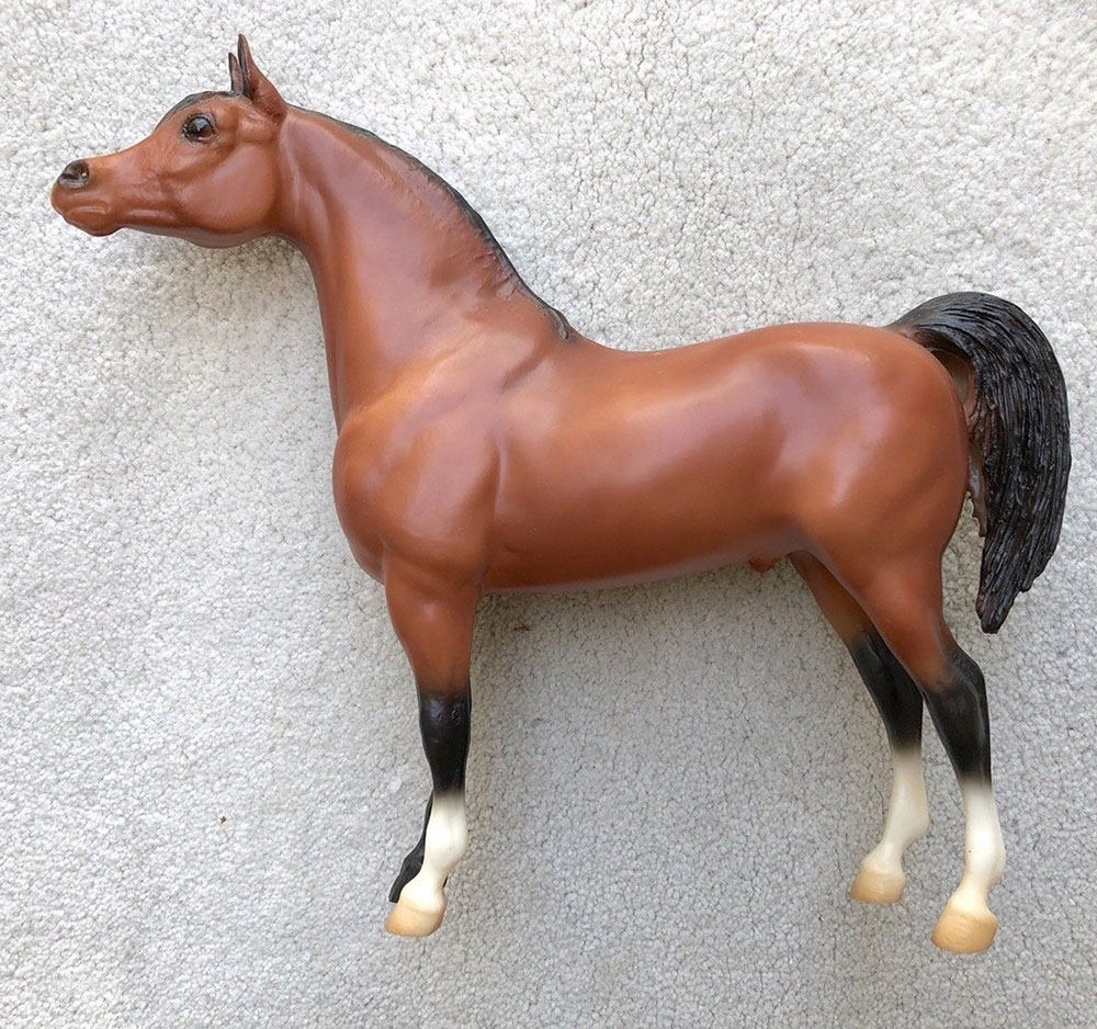 Matte to semigloss bay; blaze over muzzle; 3 or various socks; Sears SR – with Family Arabian Stallion; Proud Arabian Mare