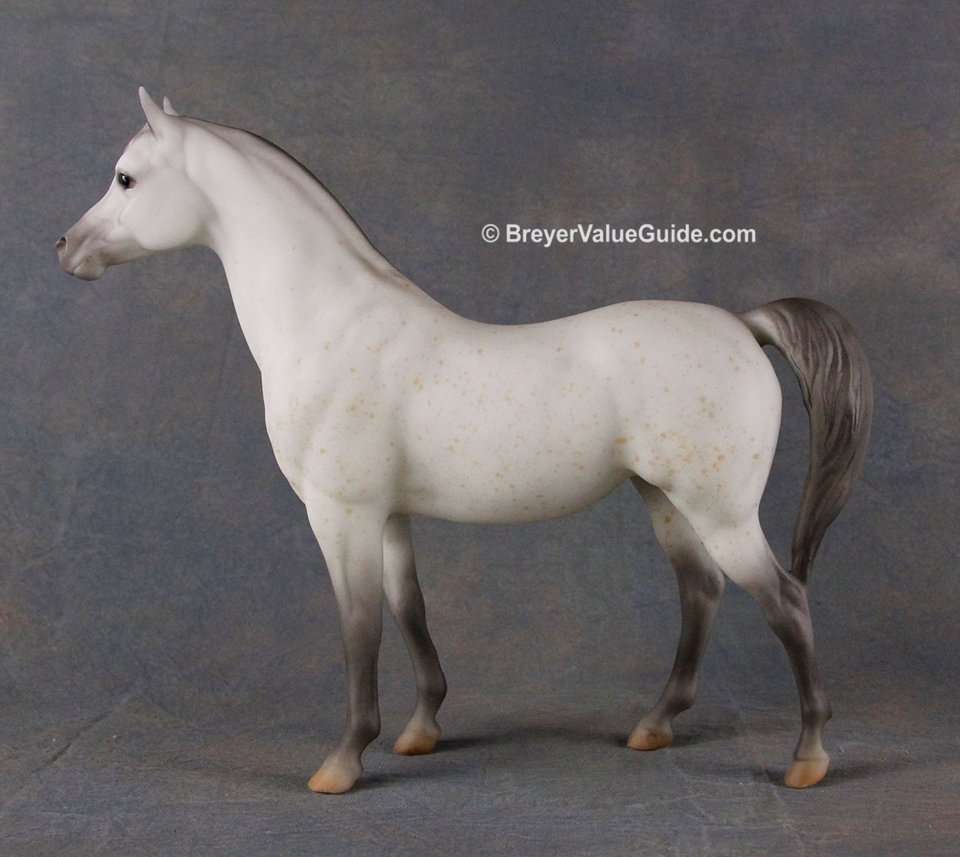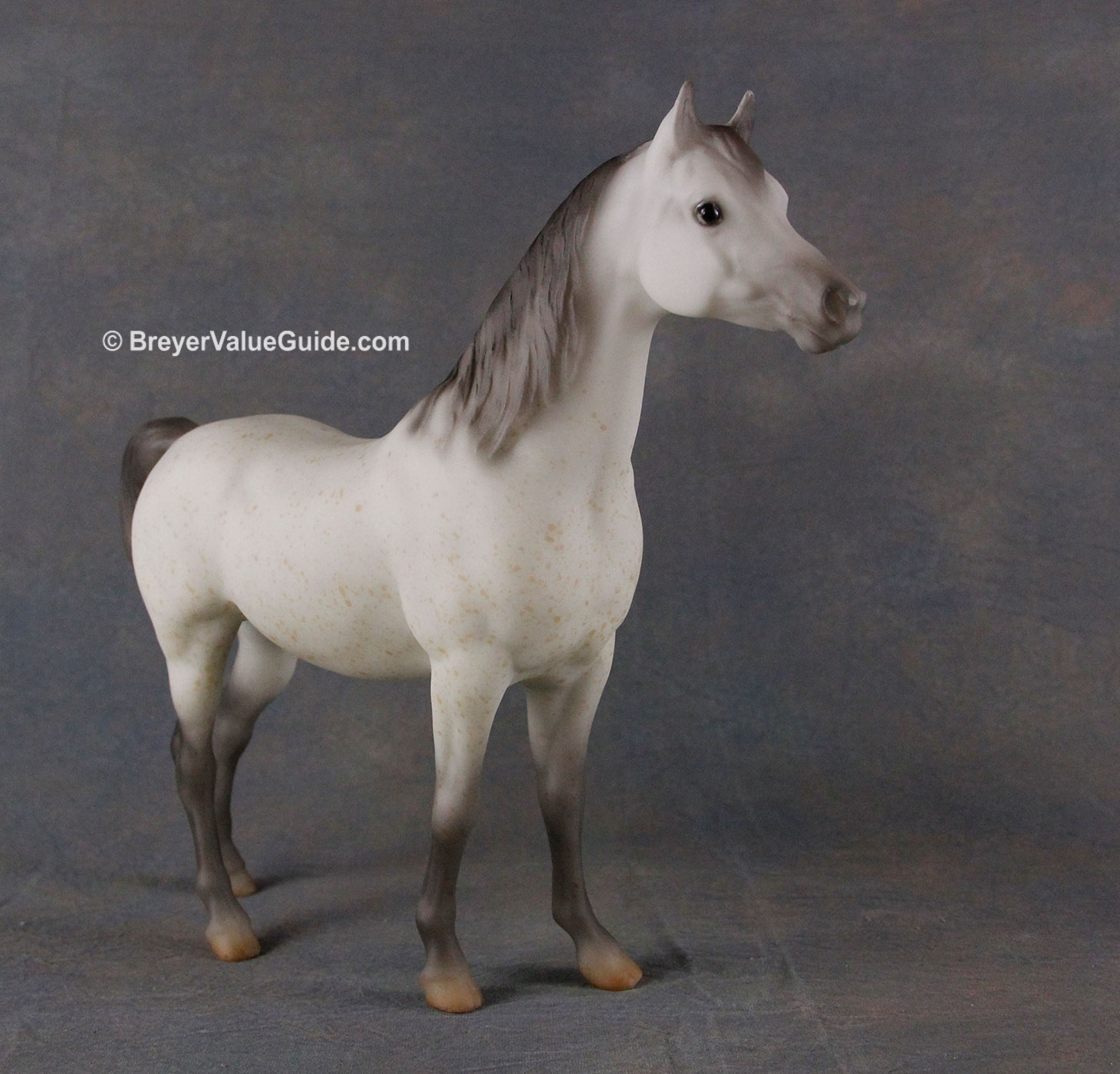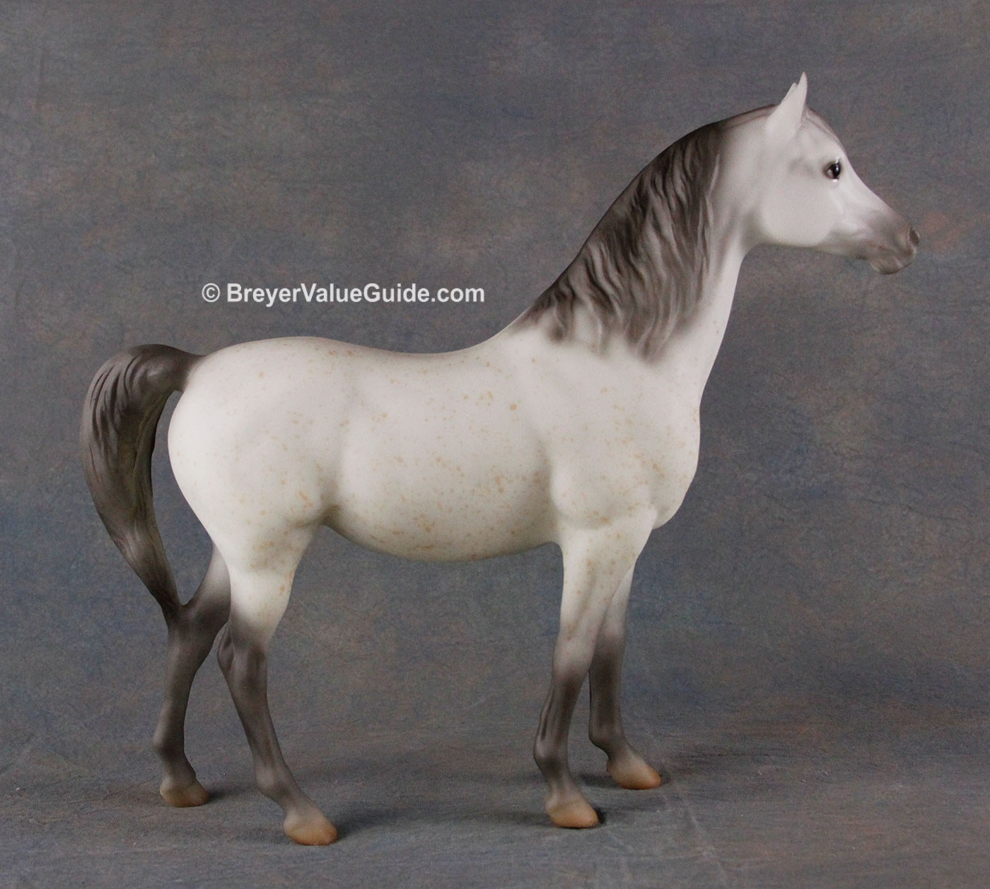 Matte fleabitten grey; chestnut speckles; grey shaded points; tan hooves; Sears SR – With Family Arabian Stallion and Proud Arabian Stallion