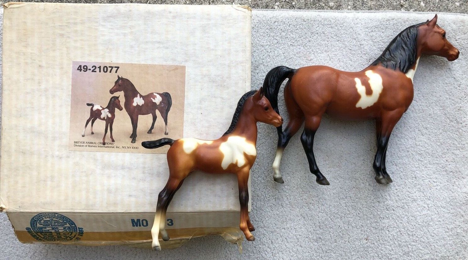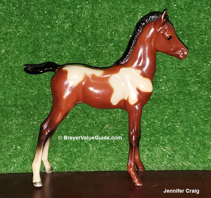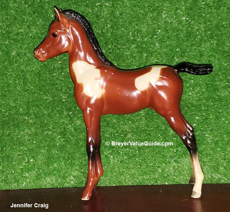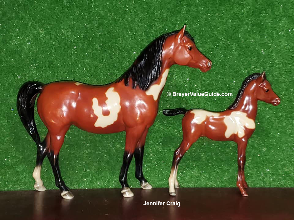 Matte red bay pinto; solid face; 2 hind socks; Sears Wish Book SR – With Proud Arabian Mare