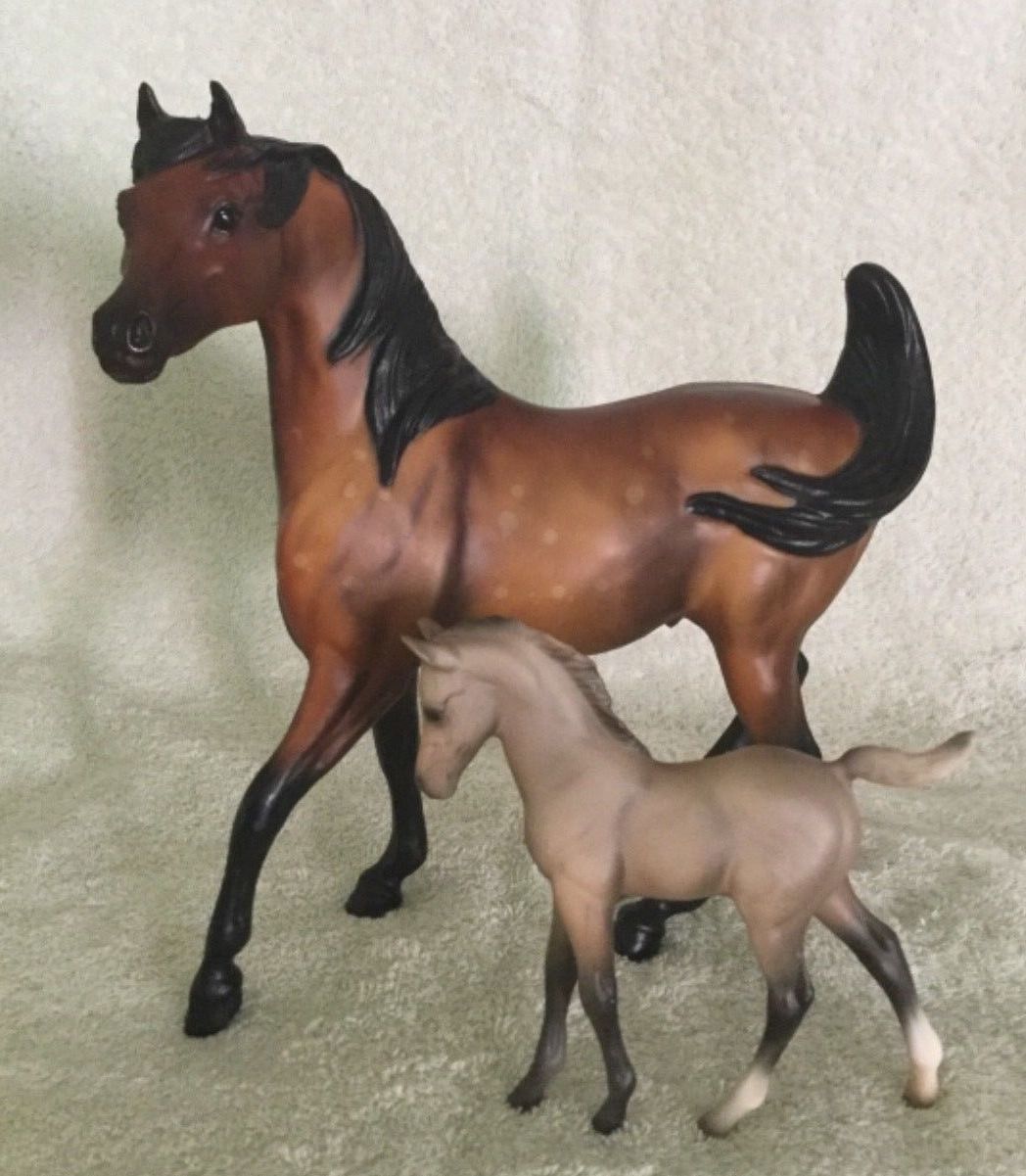 Matte dappled bay; solid face; black points – with Classic Arabian Foal