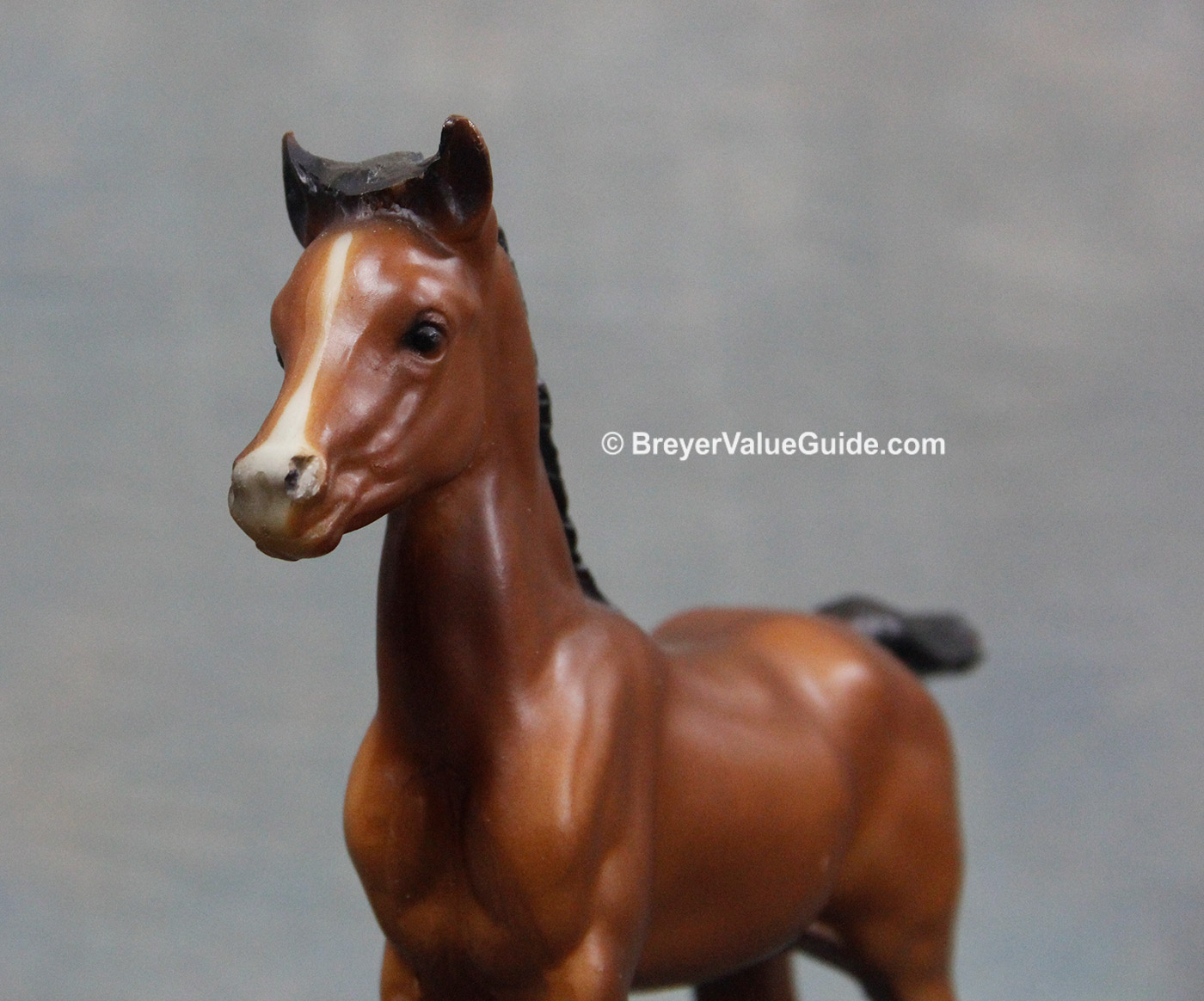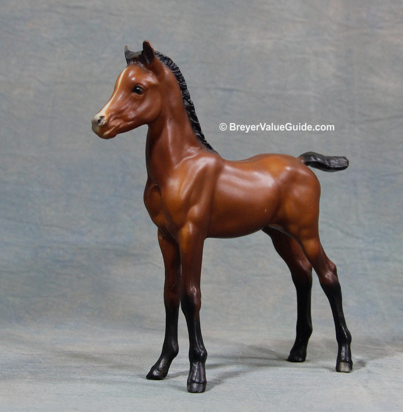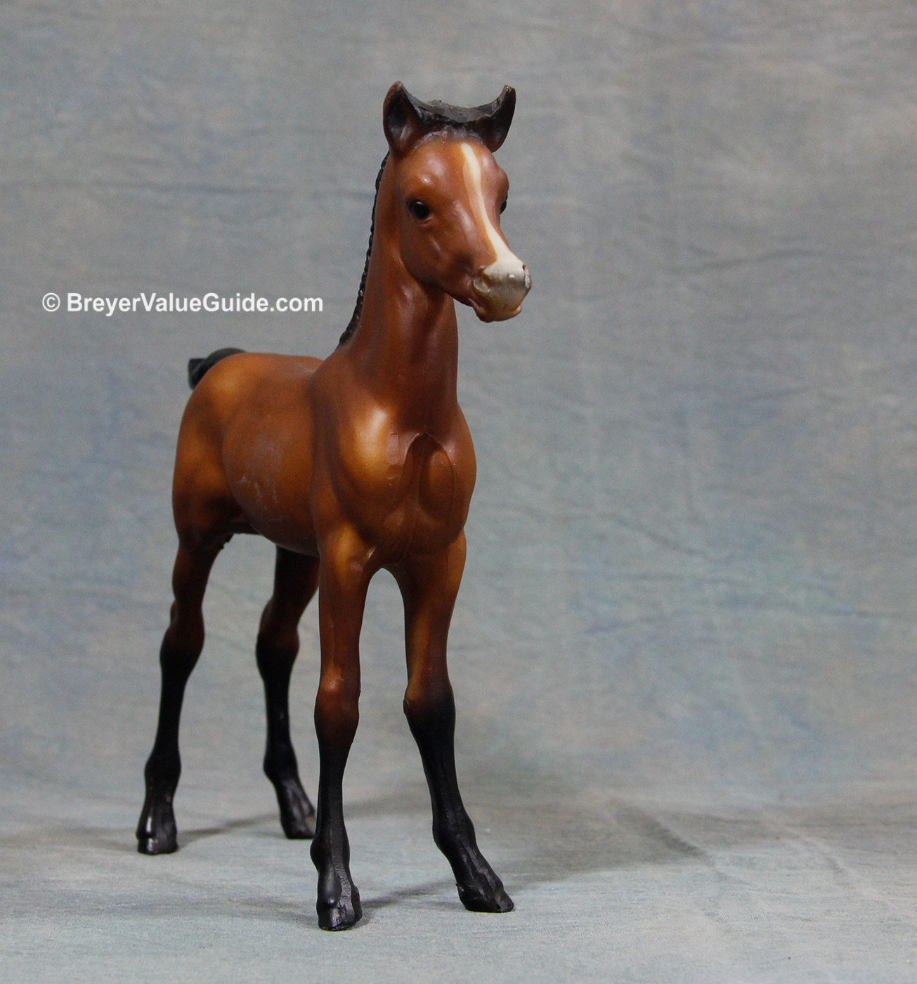 Matte bay; stripe to muzzle; no socks; JCPenney SR – with Proud Arabian Mare; Standing Stock Horse Foal; Phantom Wings Value based on 2021 sold auction price.