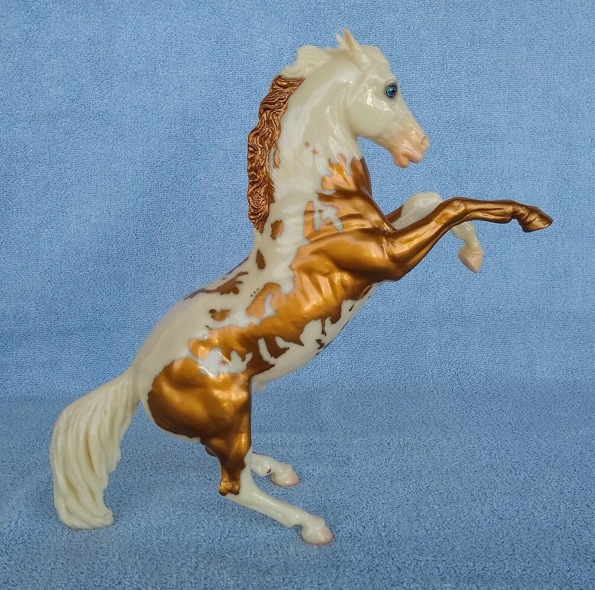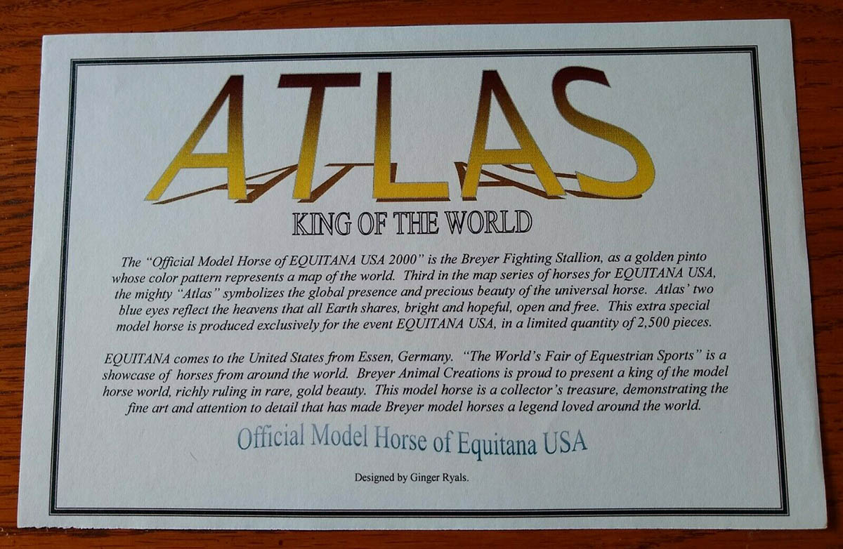 Glossy gold charm pinto; world map pattern; Equitana USA SR; 1/2500