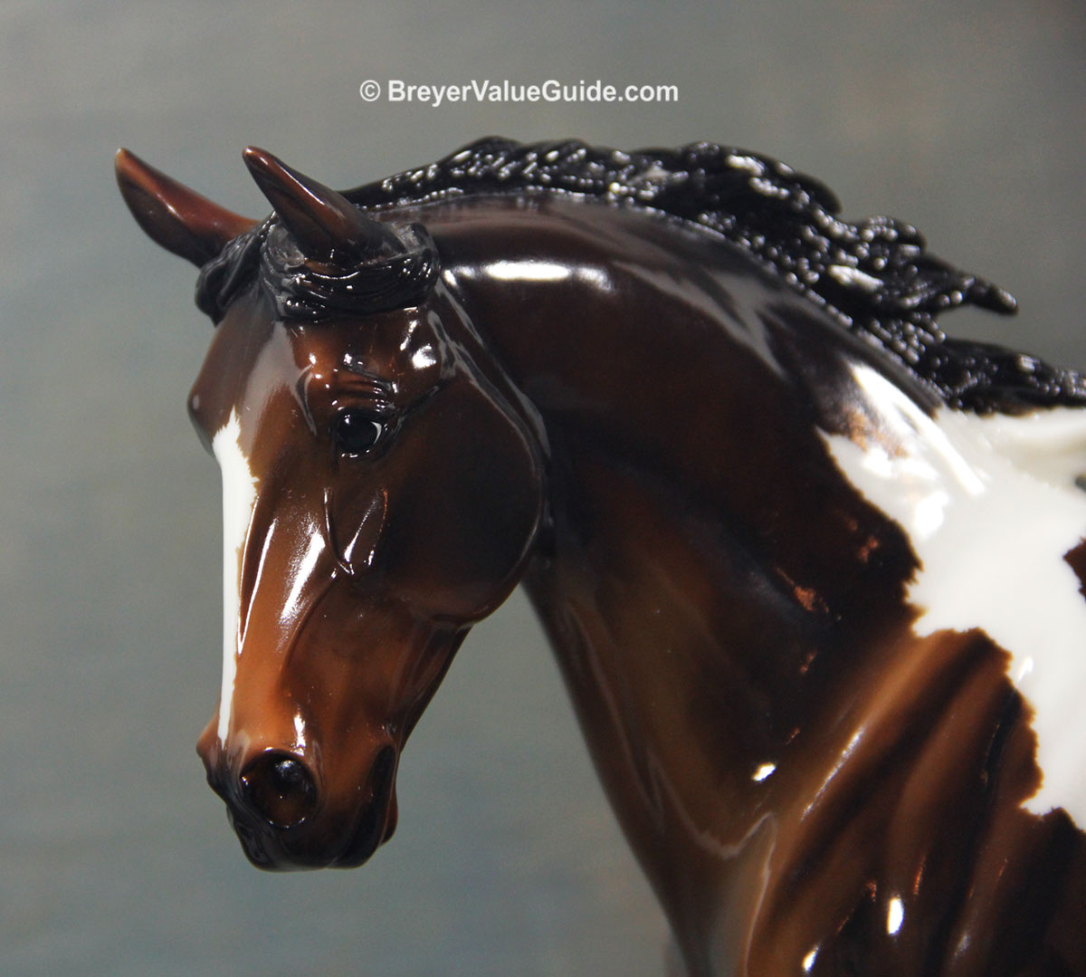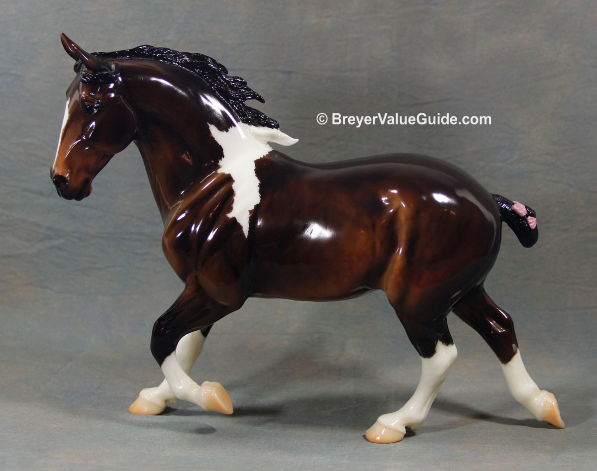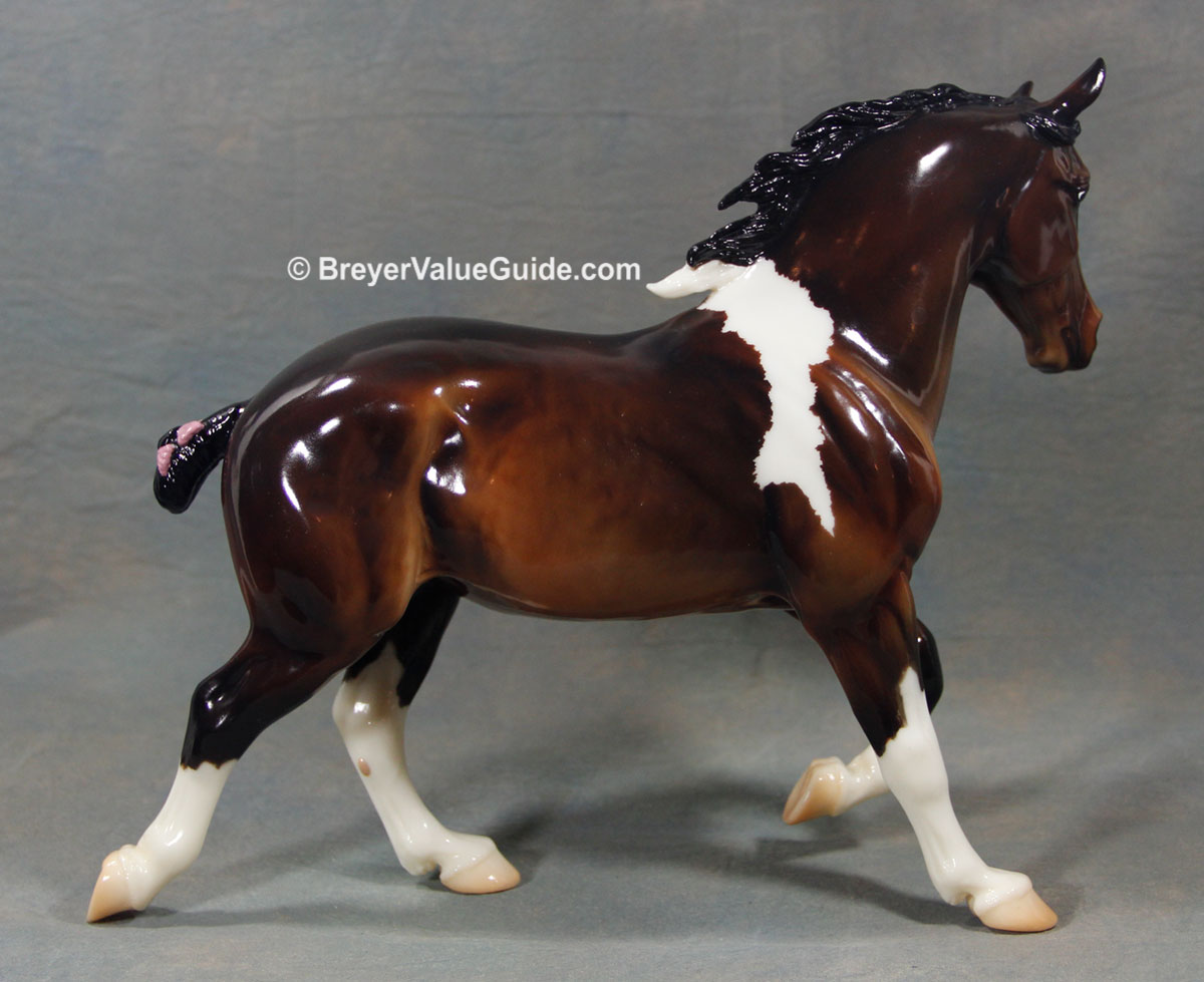 Glossy bay pinto; stripe; 2 stockings; pink tail ribbon; Collector’s Choice SR