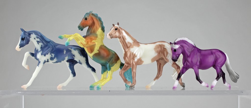 Matte purple; white and grey shaded mane and tail; 4 socks with purple hooves; BreyerFest SR Stablemate, 1/3315