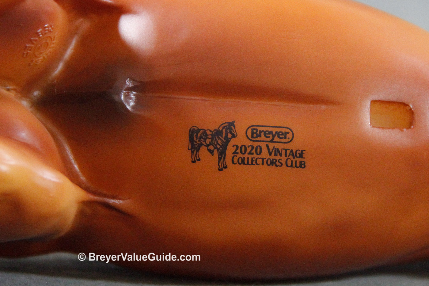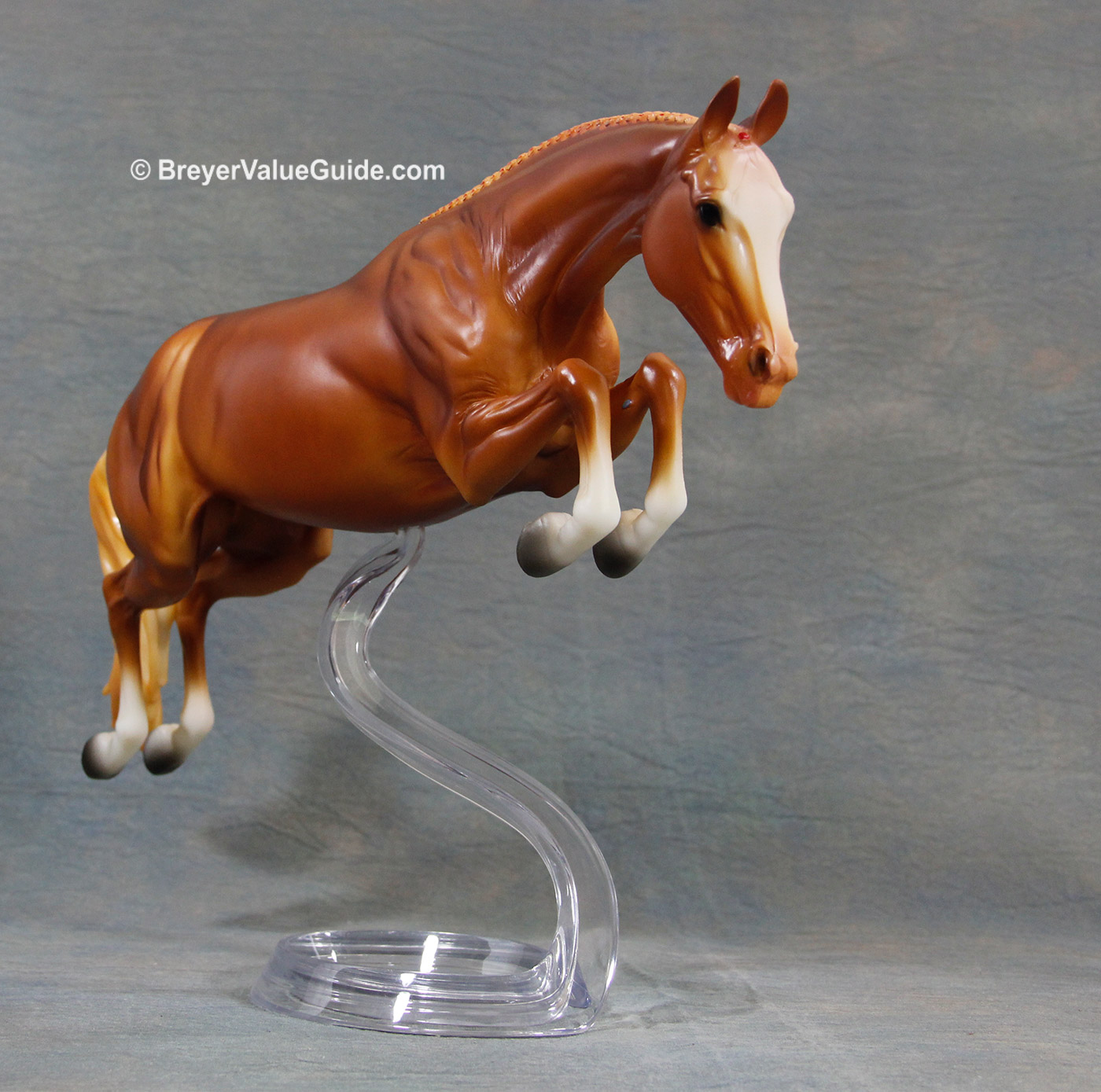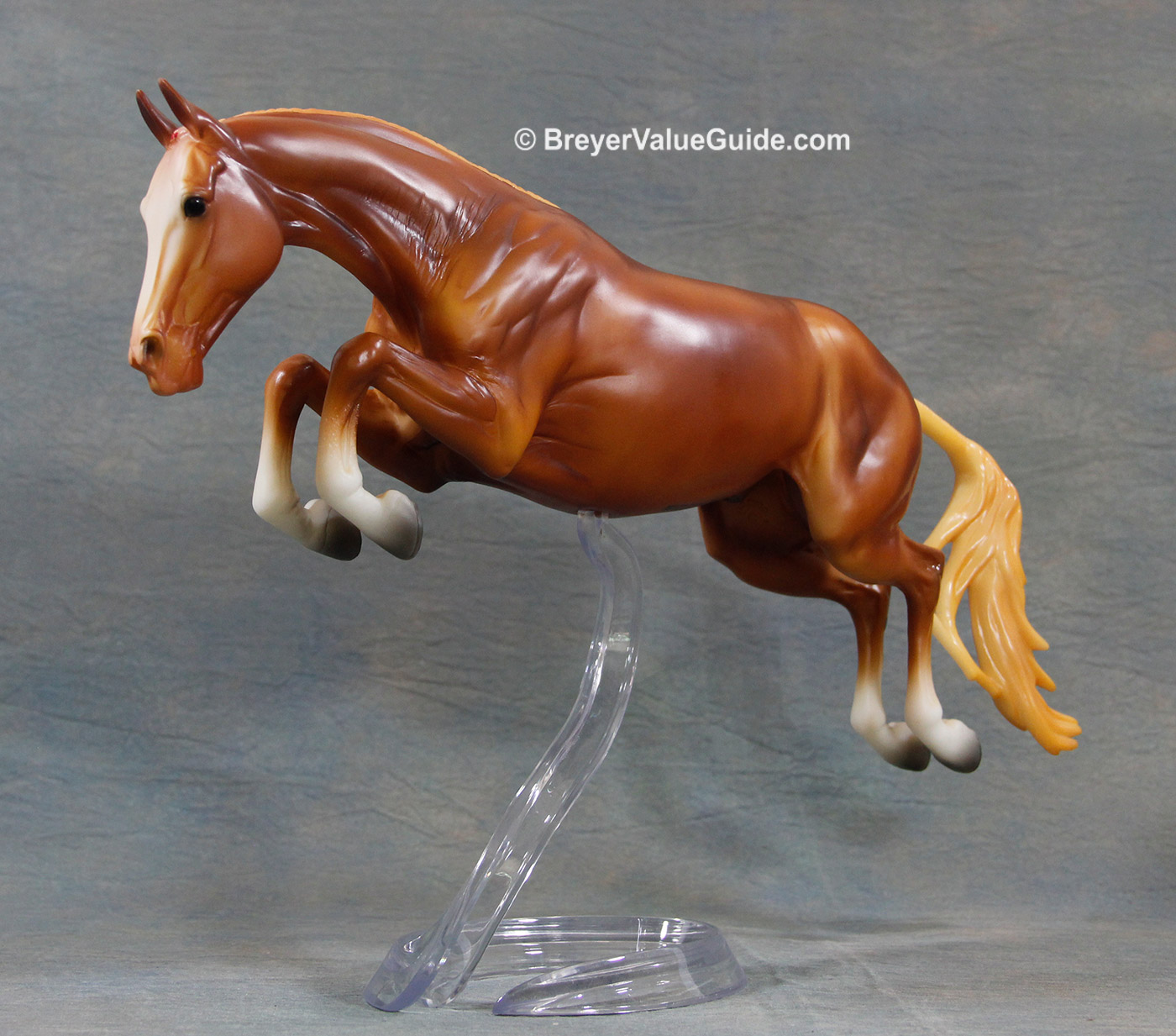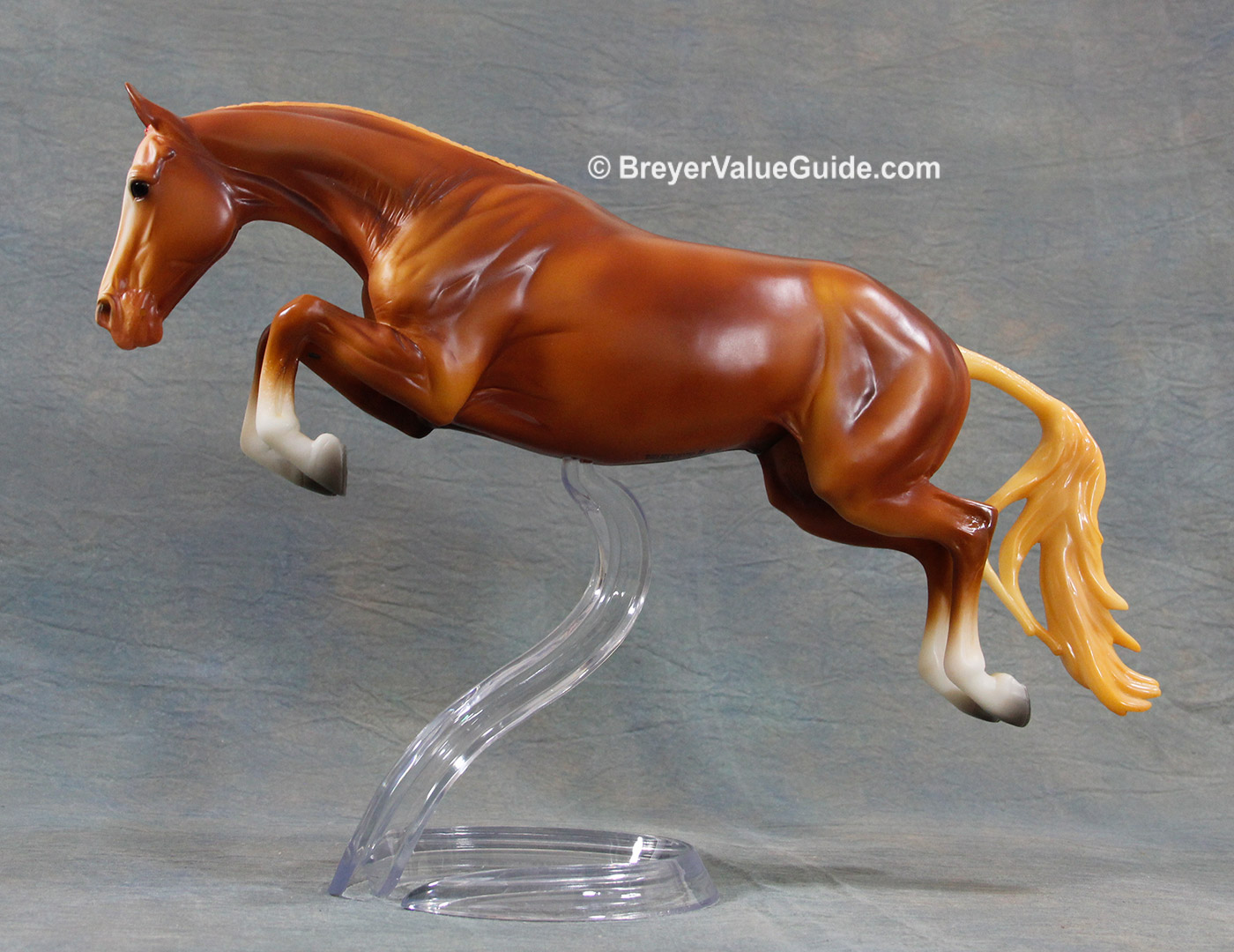 Matte chestnut; flaxen mane and tail; bald face; 4 stockings; red ribbons; Vintage Club SR; 1/500
