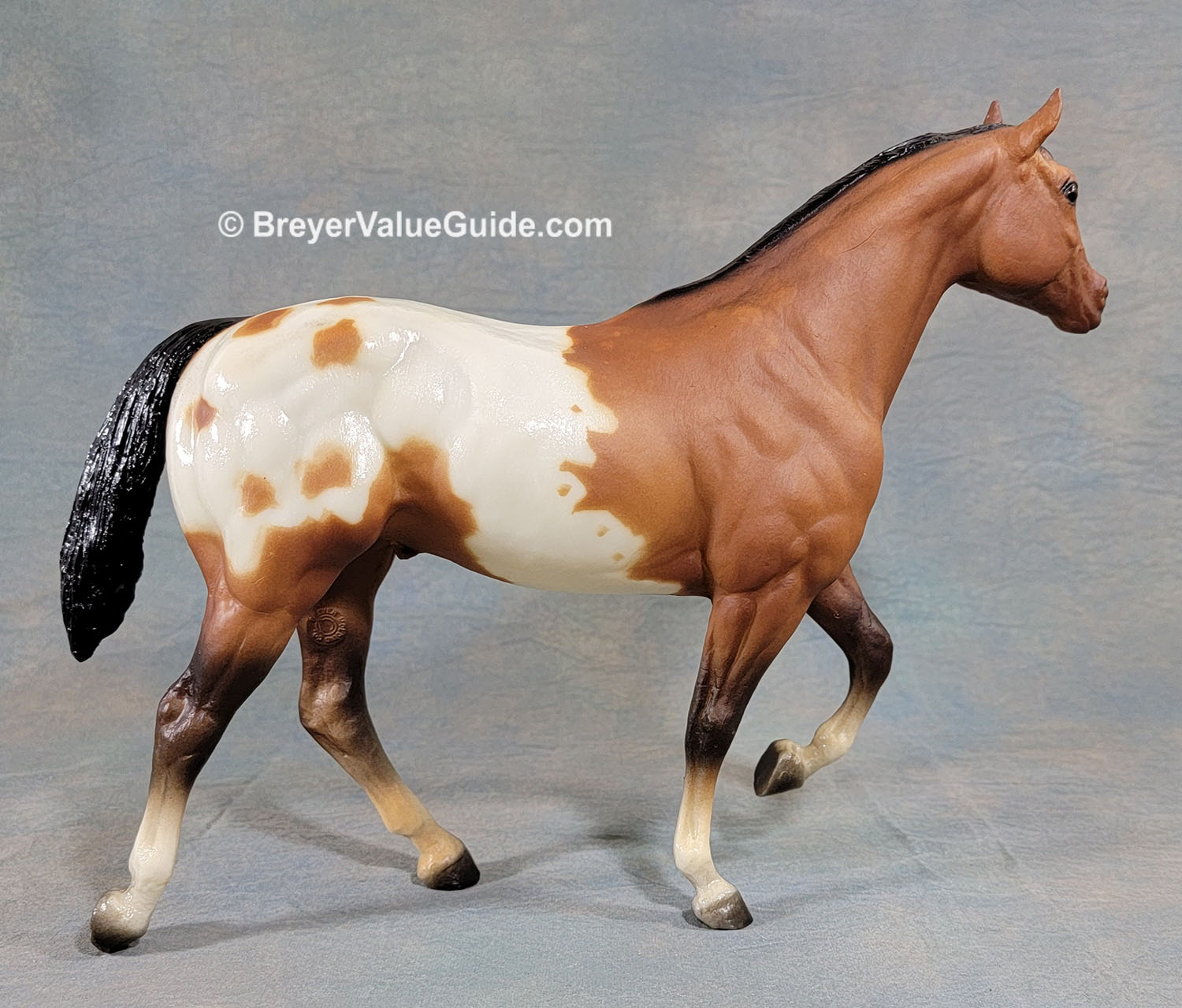 Matte bay blanket appaloosa; solid face; stenciled blanket and spots; 4 socks; no-sock variation known