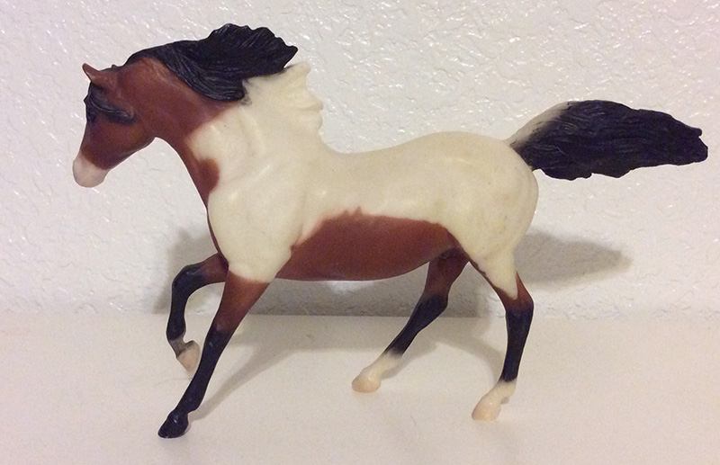 Matte bay pinto; stripe with white muzzle; 3 socks