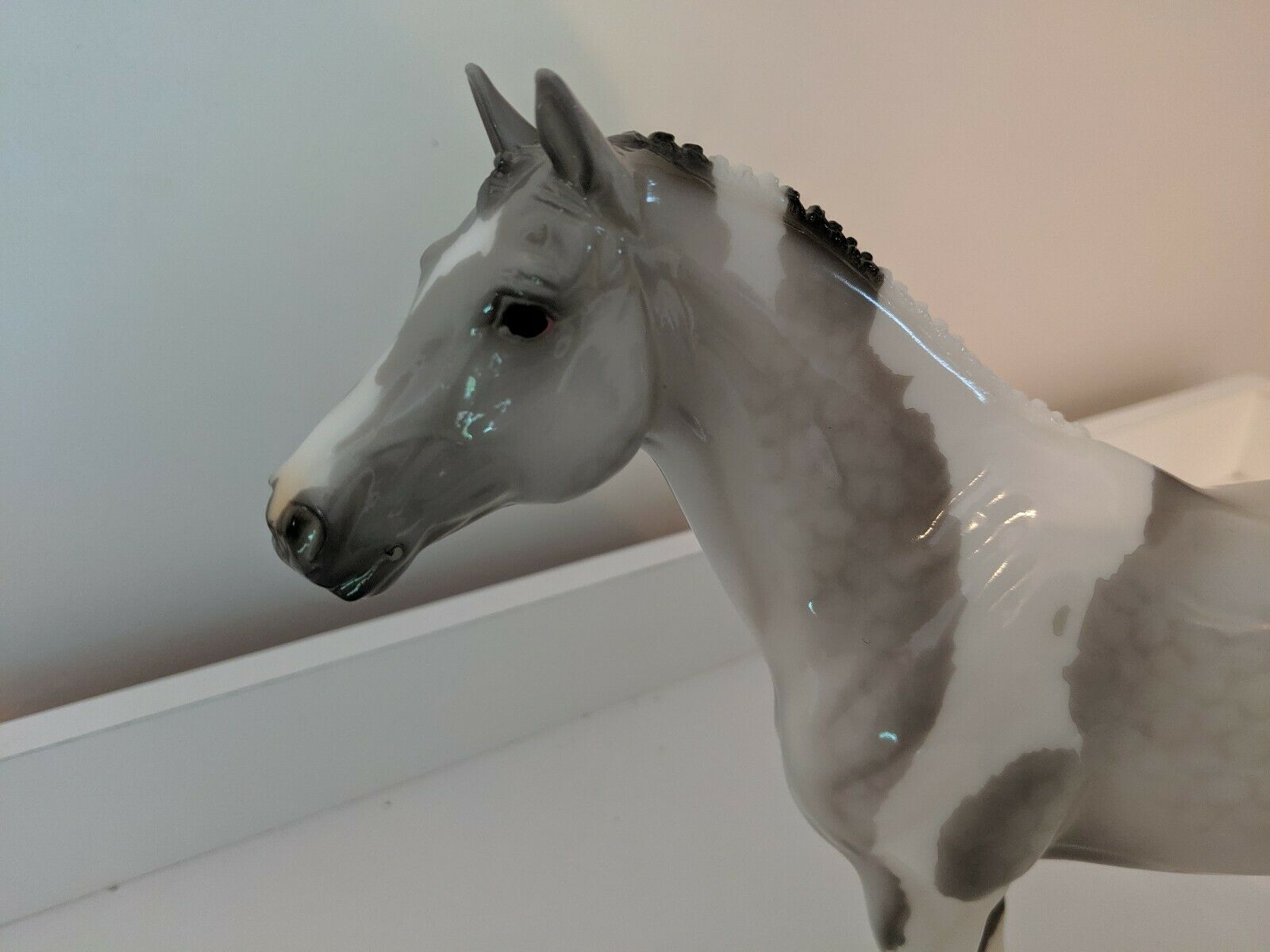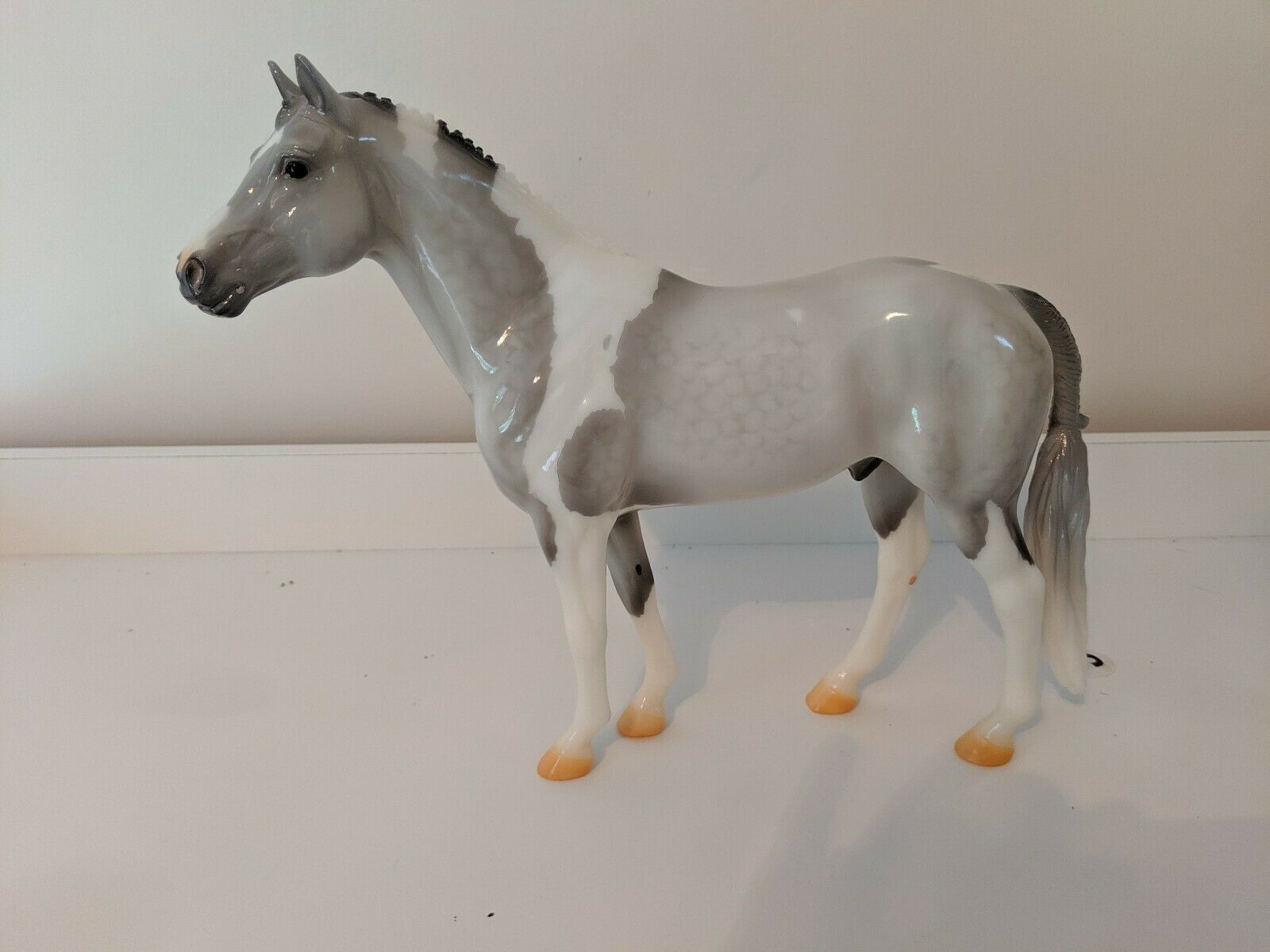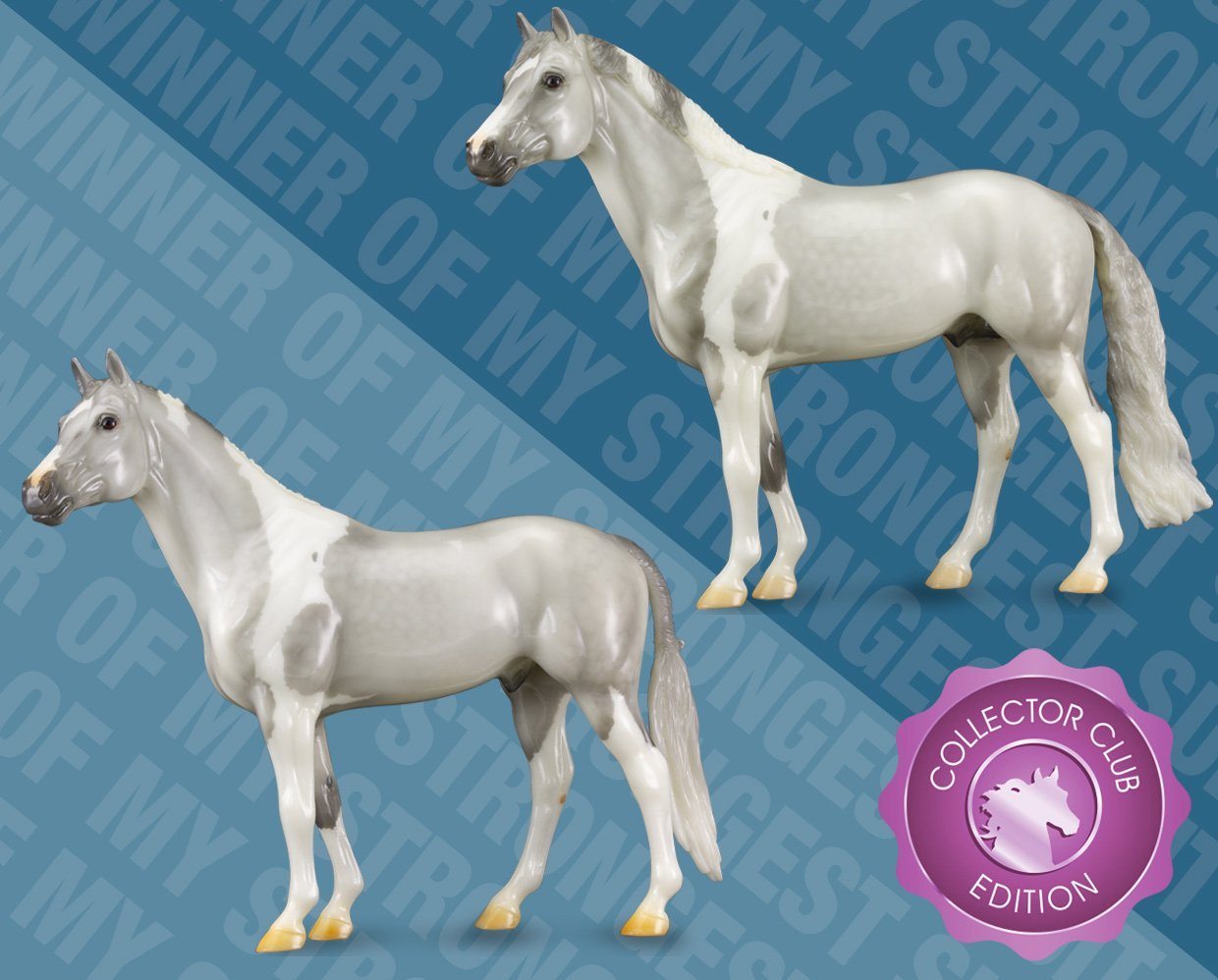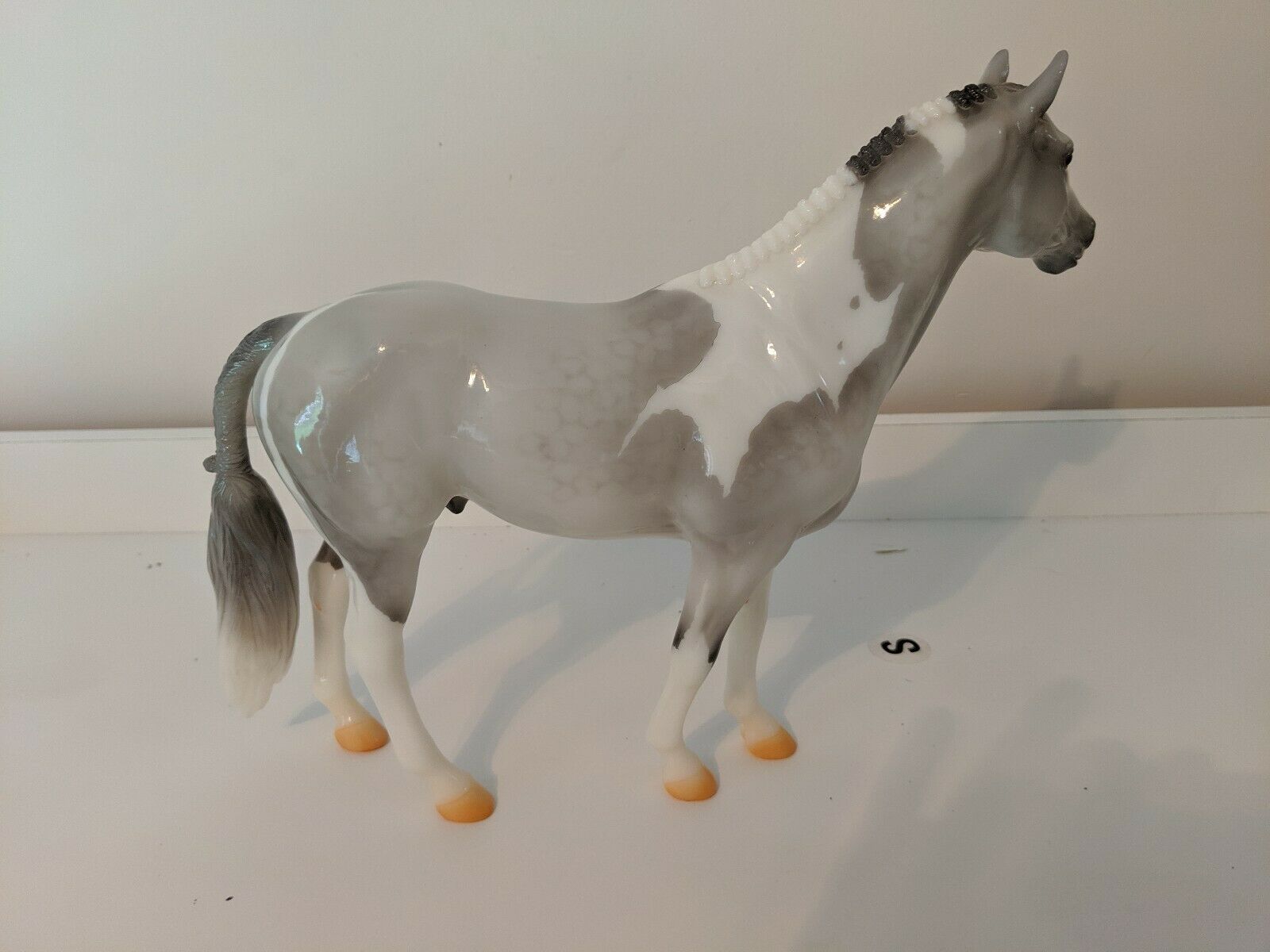 Glossy grey pinto, dapples, broken blaze, 4 stockings, braided mane and tail version, My Strongest Suit Collector Club SR