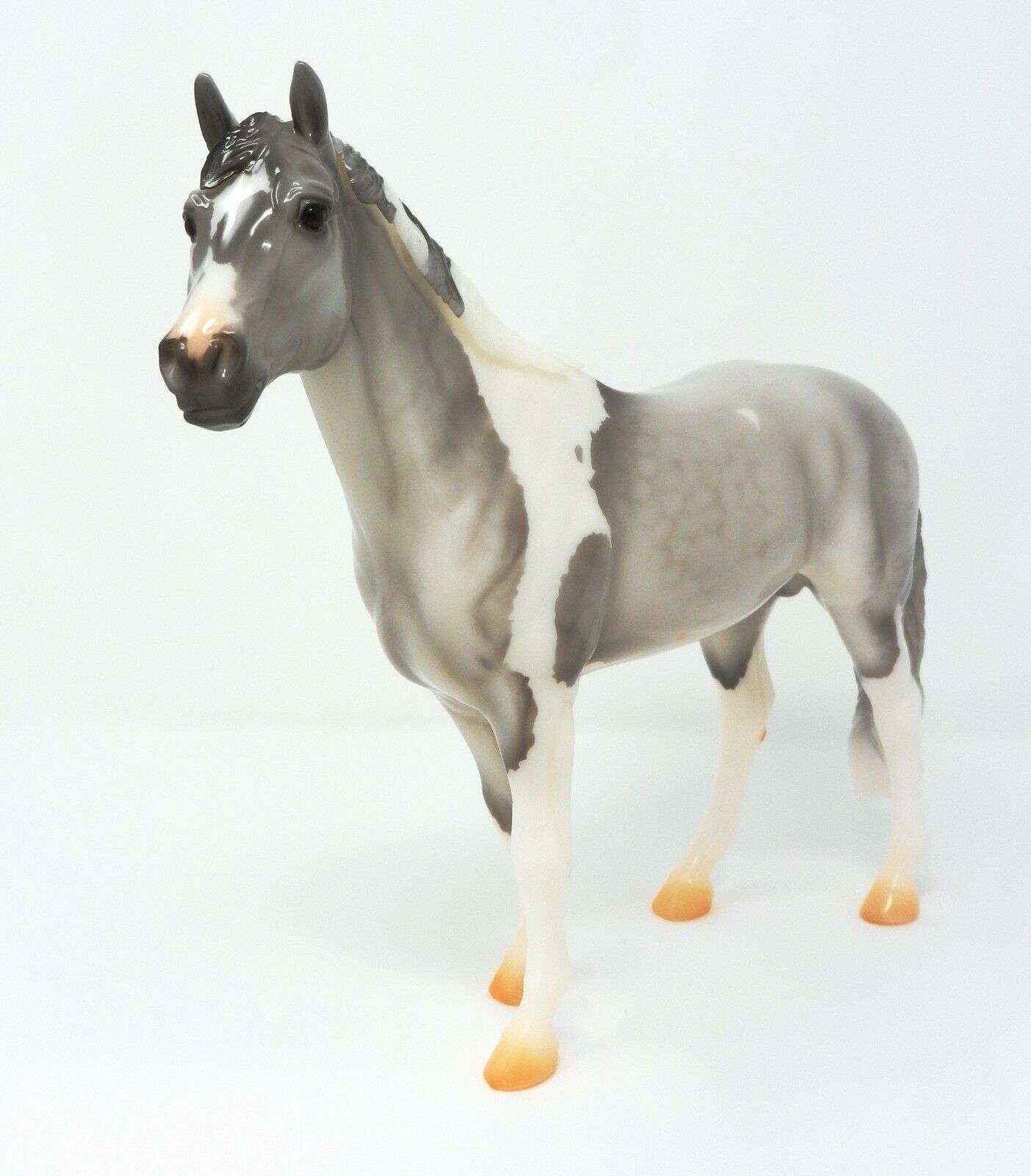 Glossy grey pinto, dapples, broken blaze, 4 stockings, loose mane and tail version, My Strongest Suit Collector Club SR