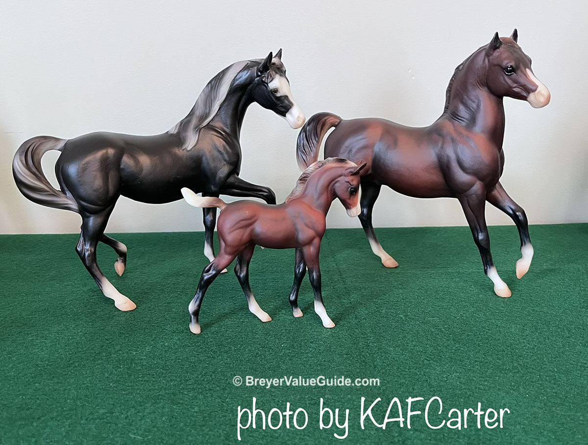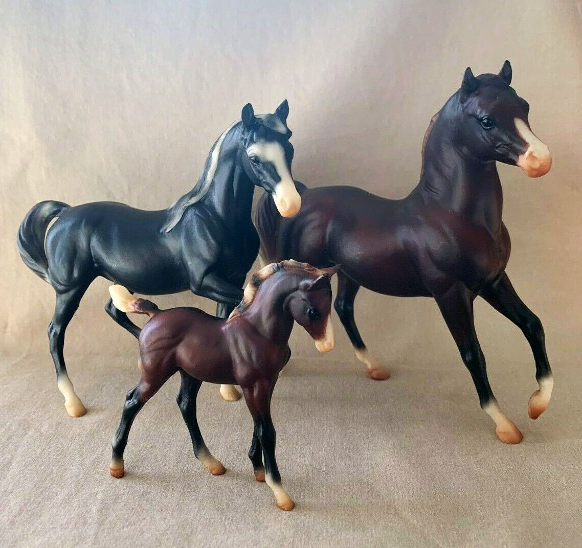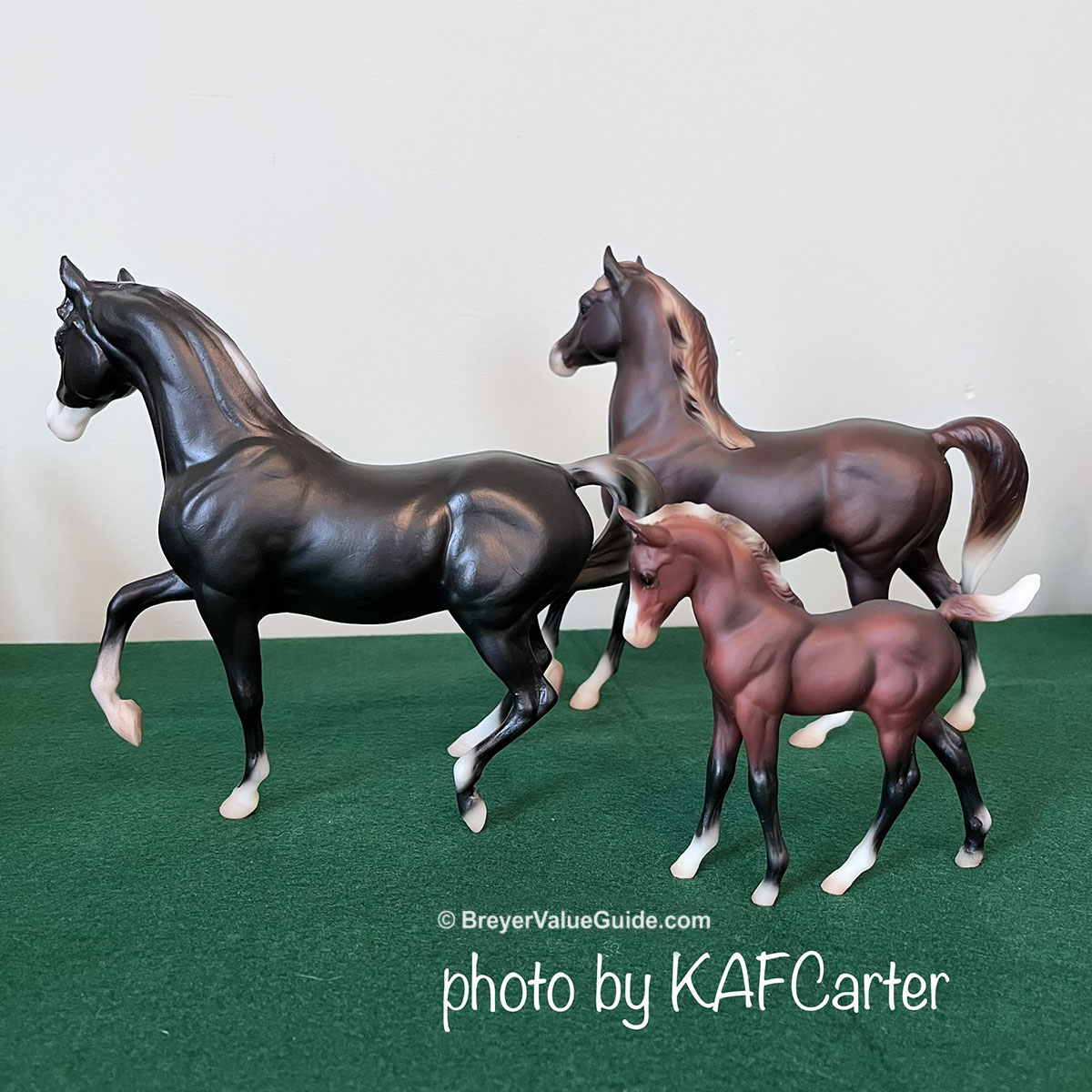Matte black; half apron face; streaked mane and tail; socks – with Arabian Foal; Arabian Stallion