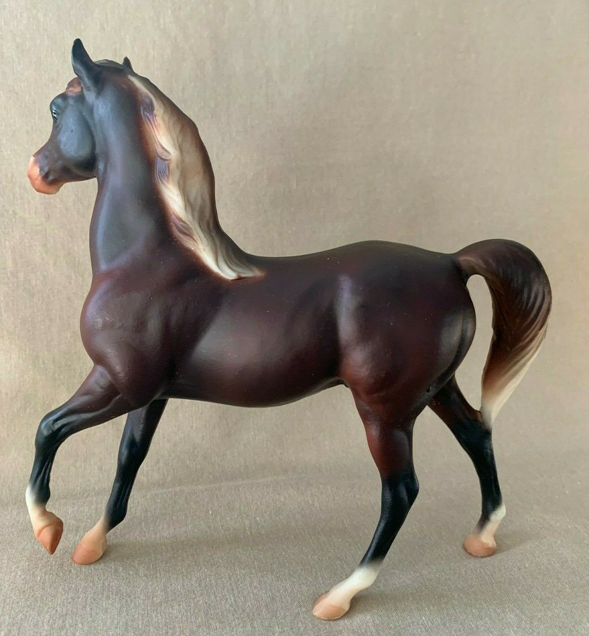 Matte bay; blaze with white muzzle; striped mane; 4 socks – with Arabian Foal; Arabian Mare