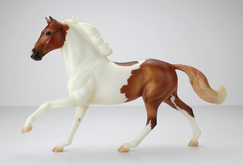 Matte chestnut or liver chestnut pinto, small star, large snip