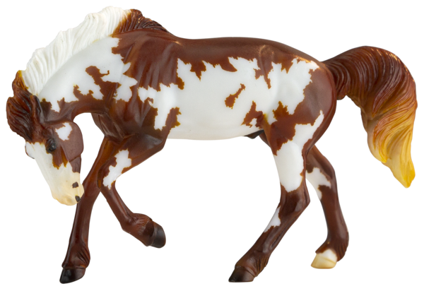 Viaje – Matte chestnut pinto; bald face; 1 hind sock; BreyerFest SR; miniature “Viajero”