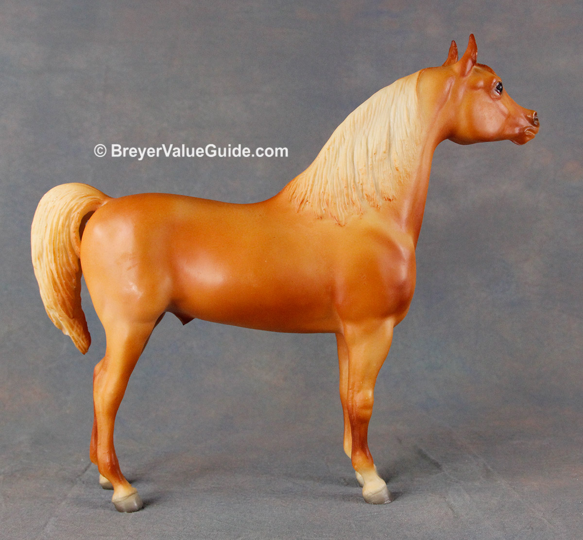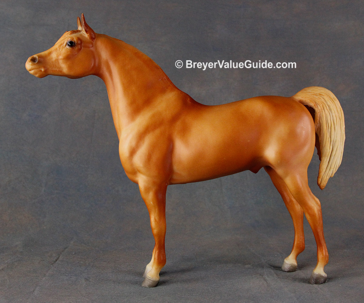 Matte sorrel (orangish) with lighter mane and tail; low socks; grey hooves; Black Horse Ranch SR; 1/333